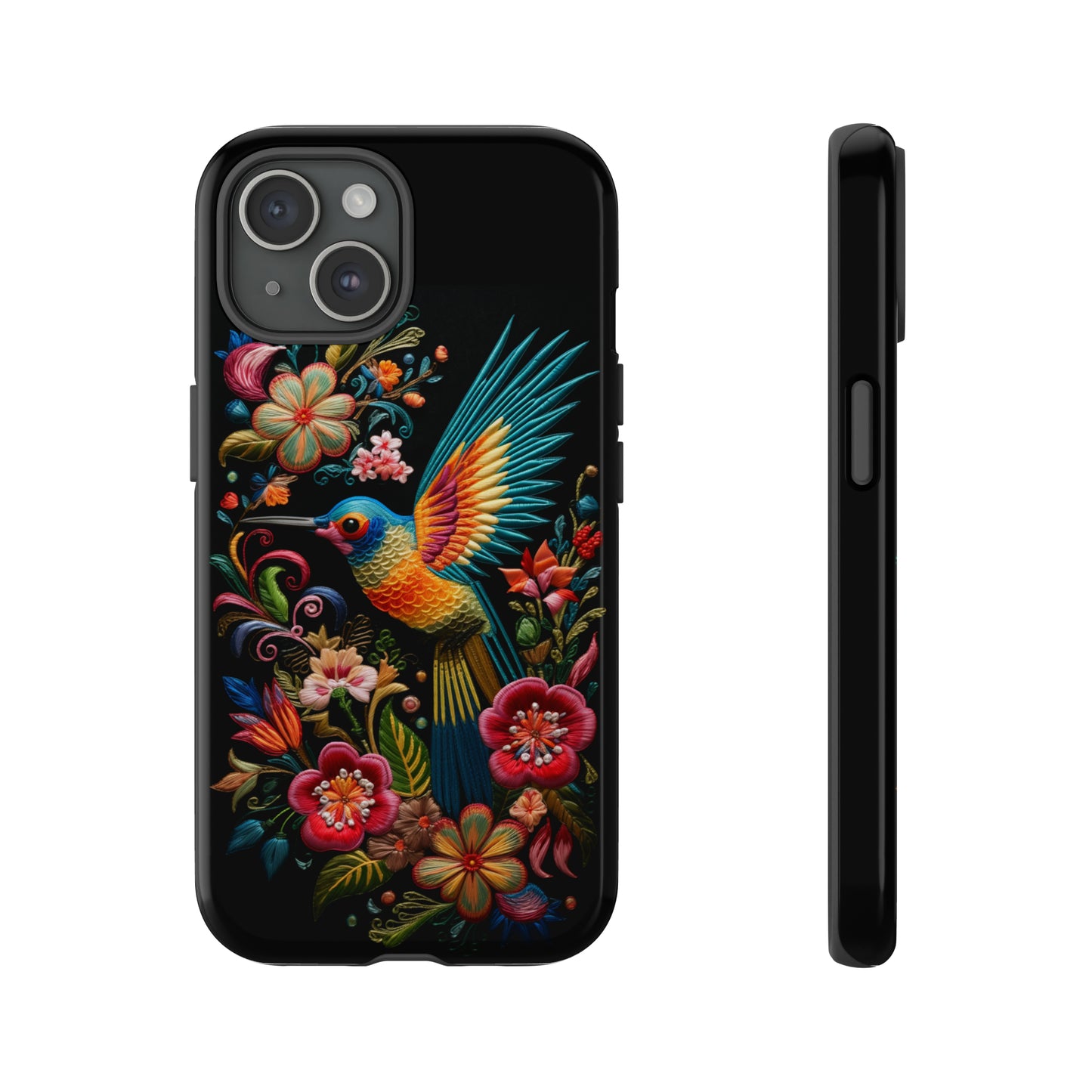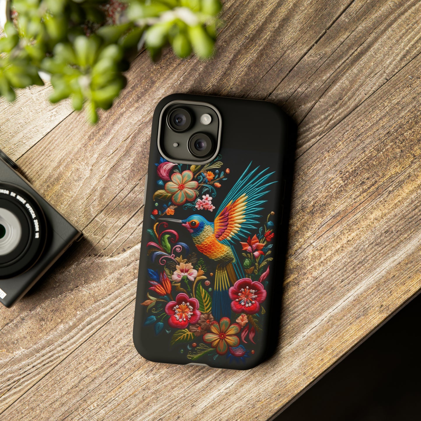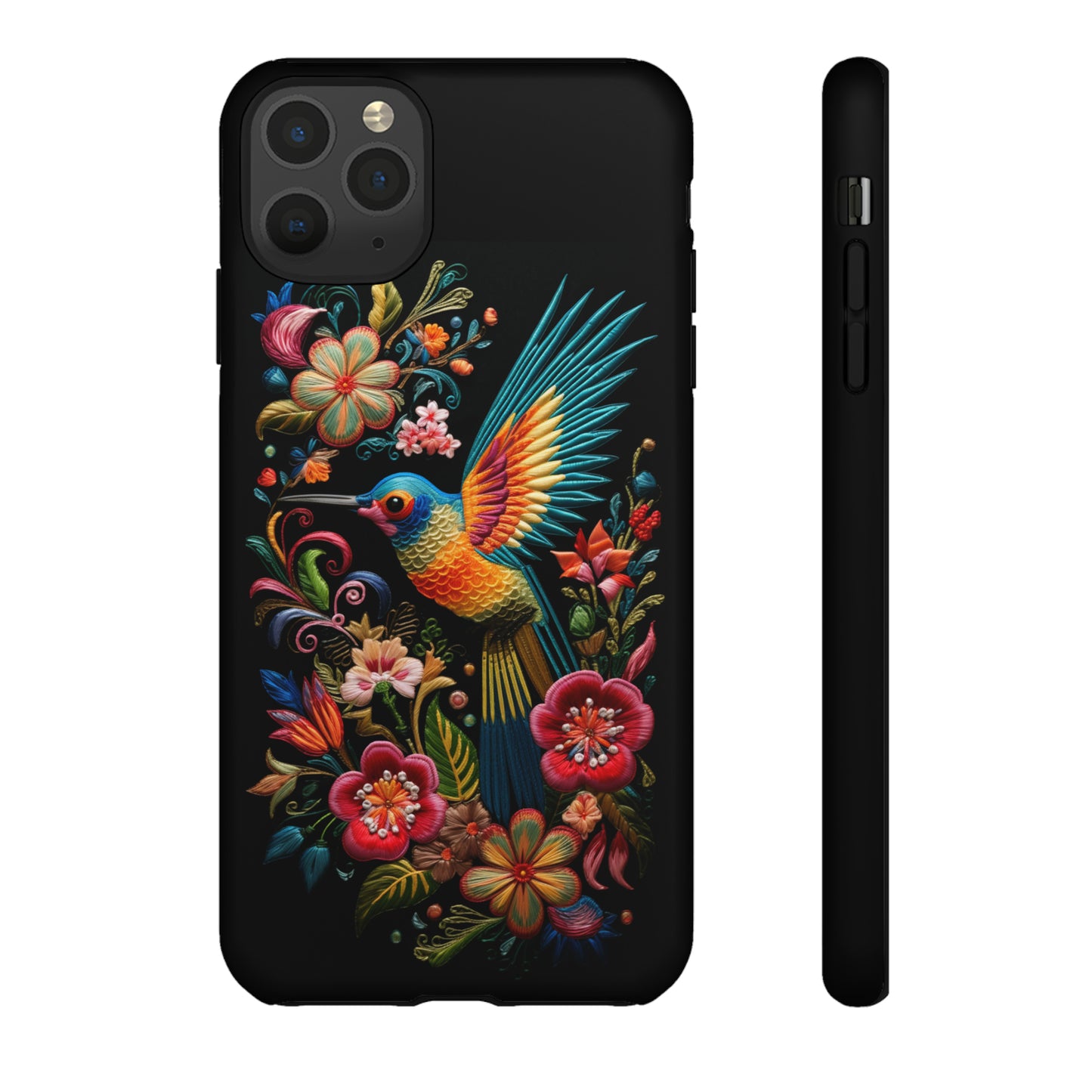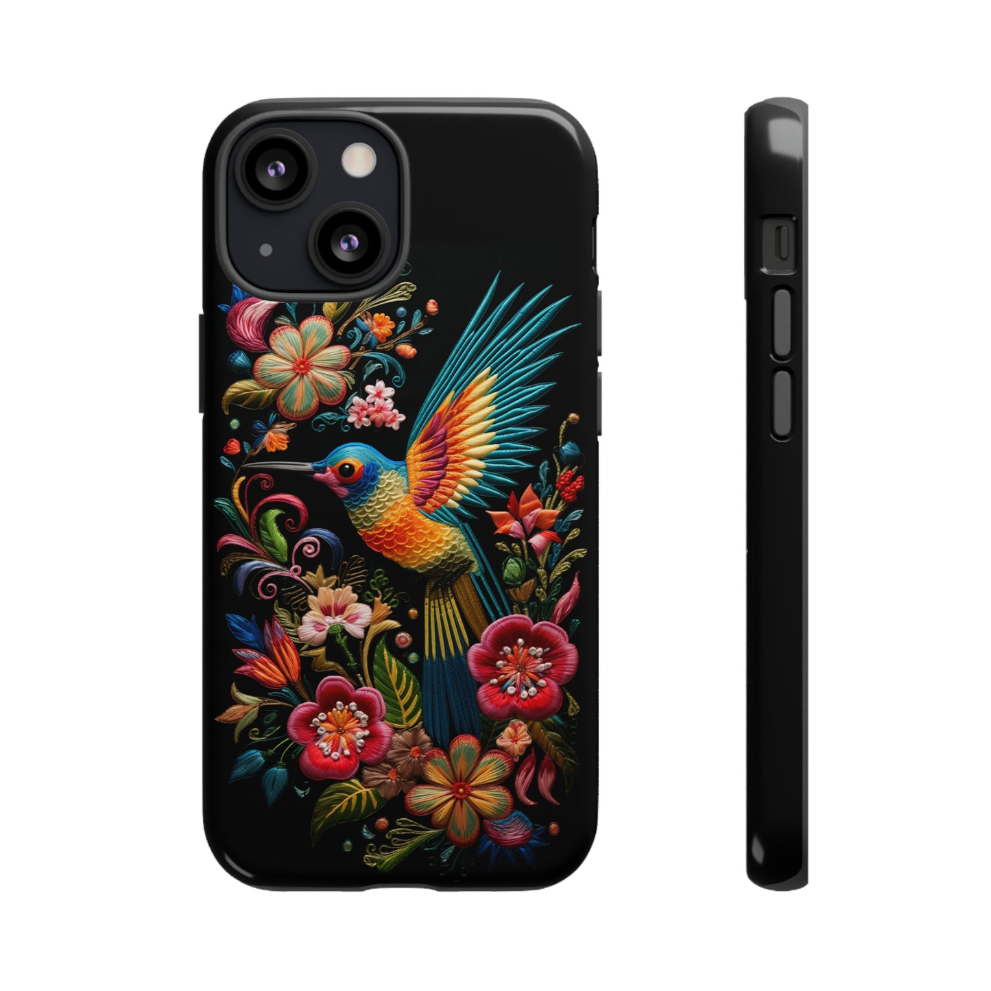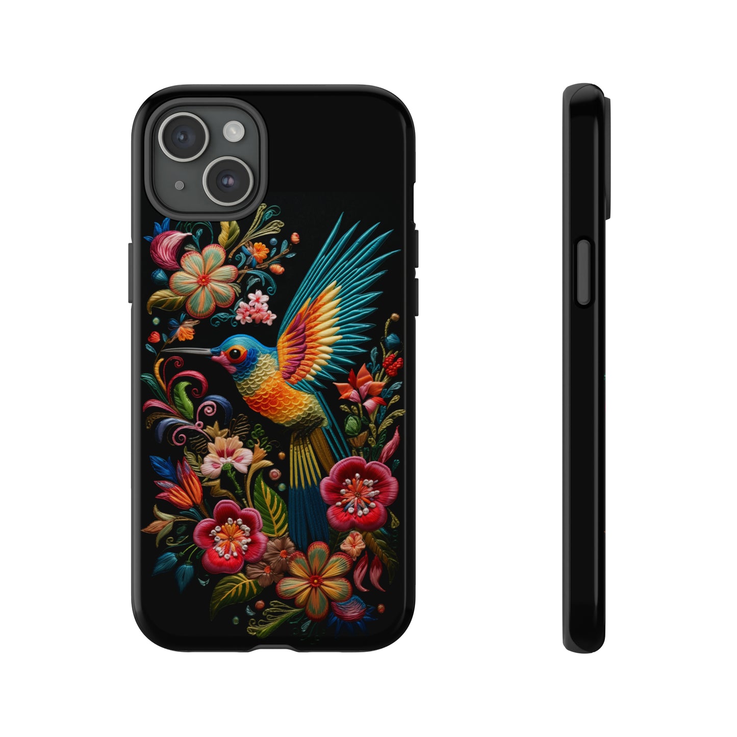 Elevate your phone's style with our Embroidery Style Hummingbird Mexican Art Phone Case. A unique blend of Mexican art and modern protection for iPhone, Samsung Galaxy, and Google Pixel