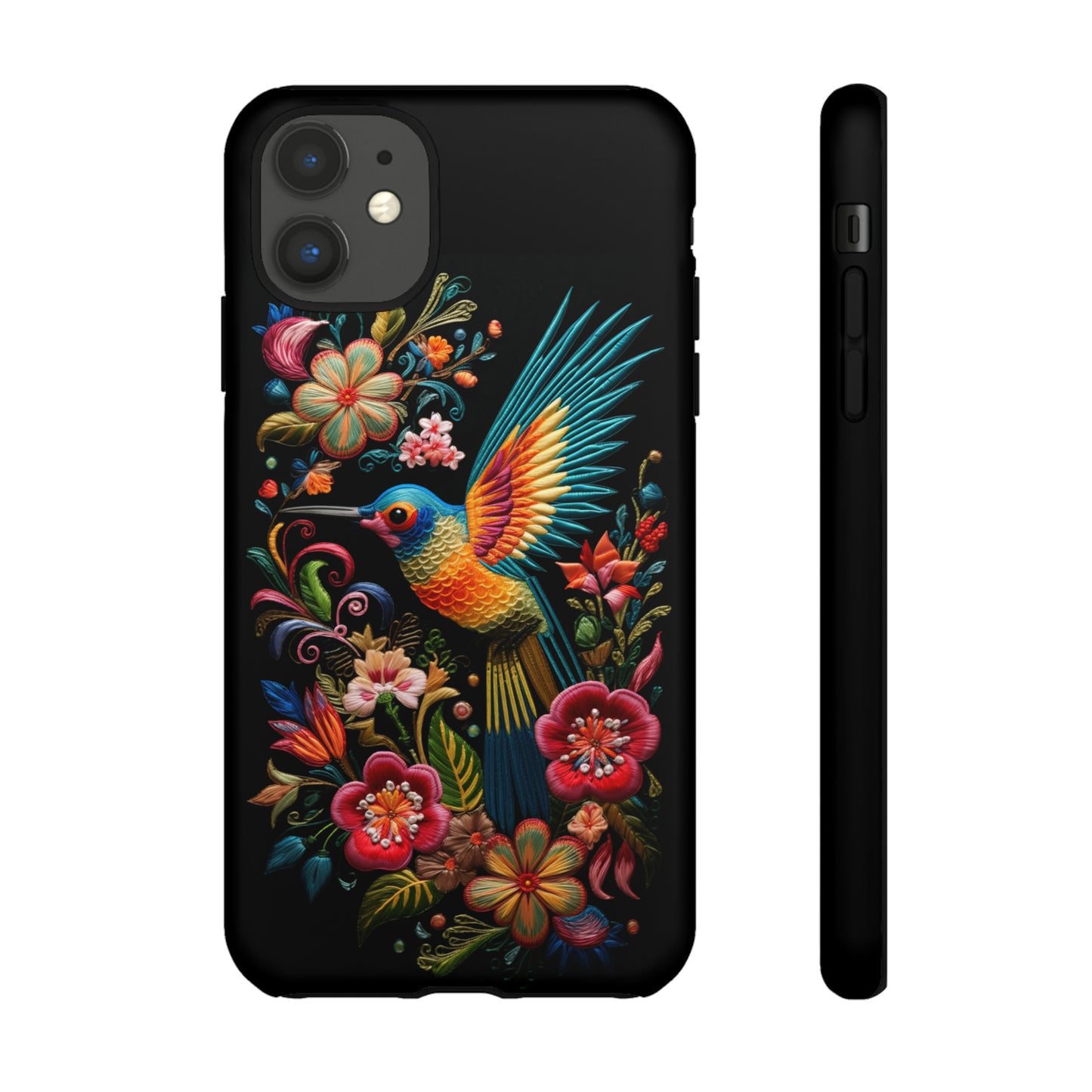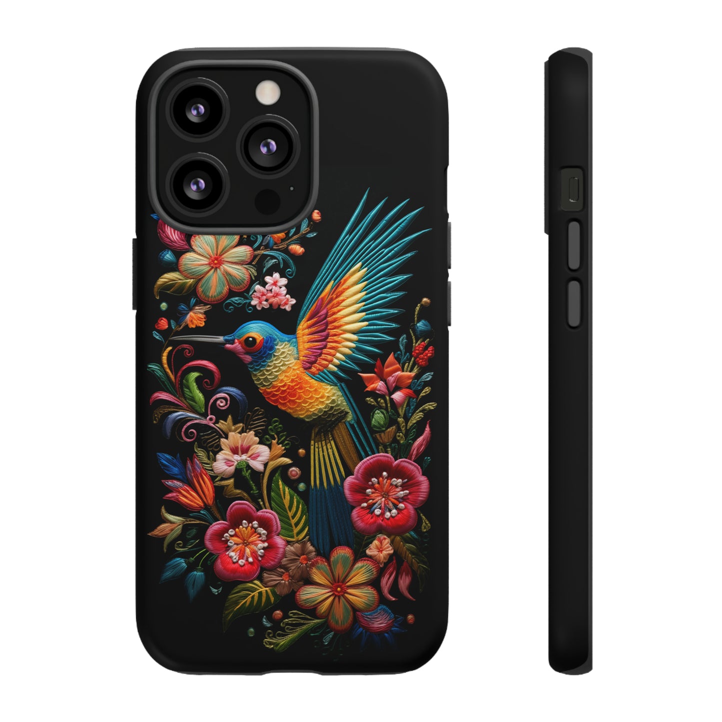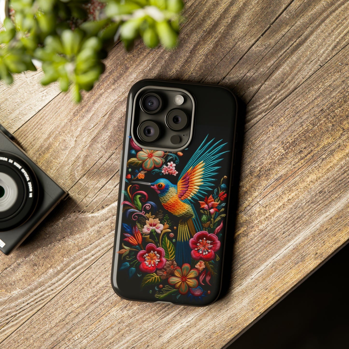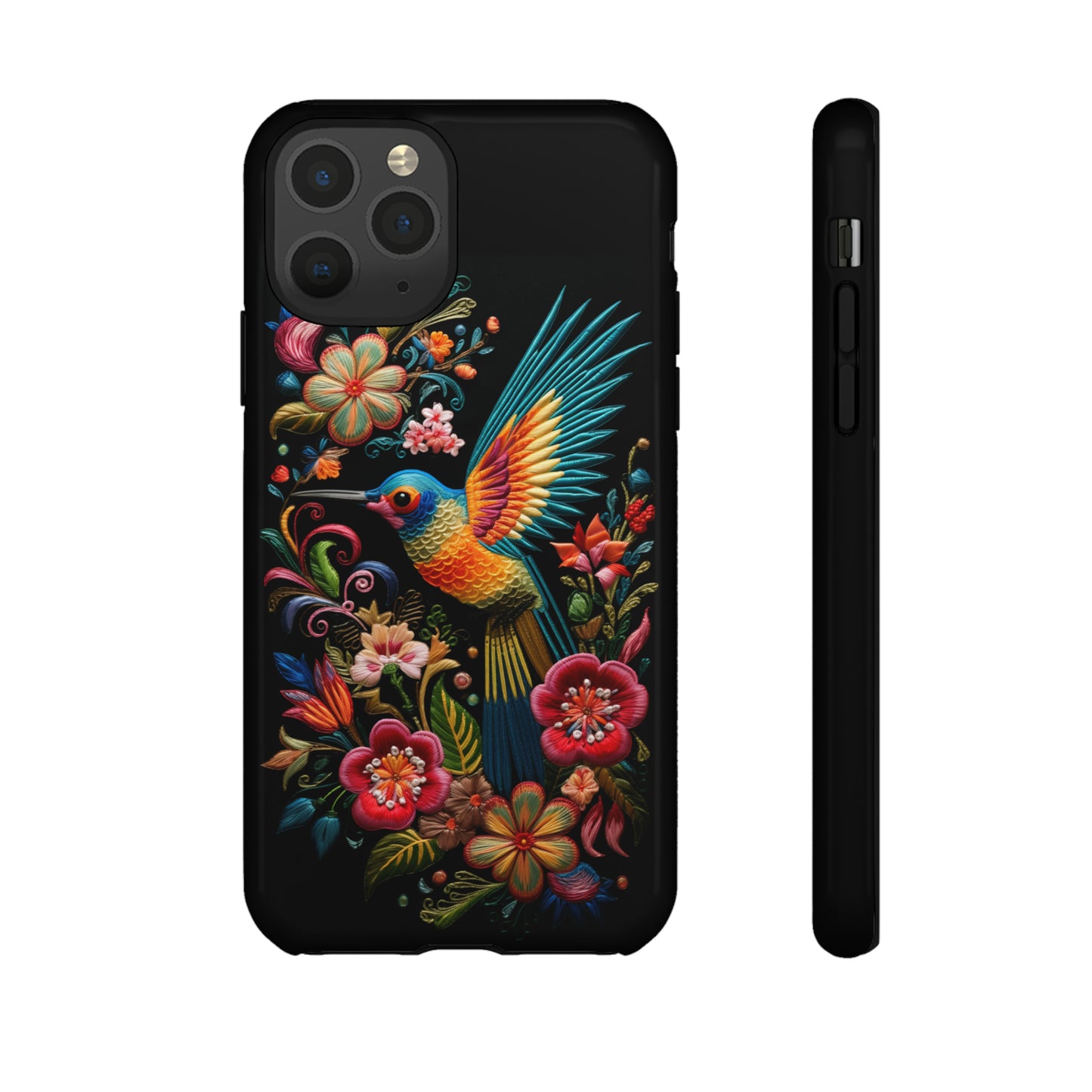 Elevate your phone's style with our Embroidery Style Hummingbird Mexican Art Phone Case. A unique blend of Mexican art and modern protection for iPhone, Samsung Galaxy, and Google Pixel