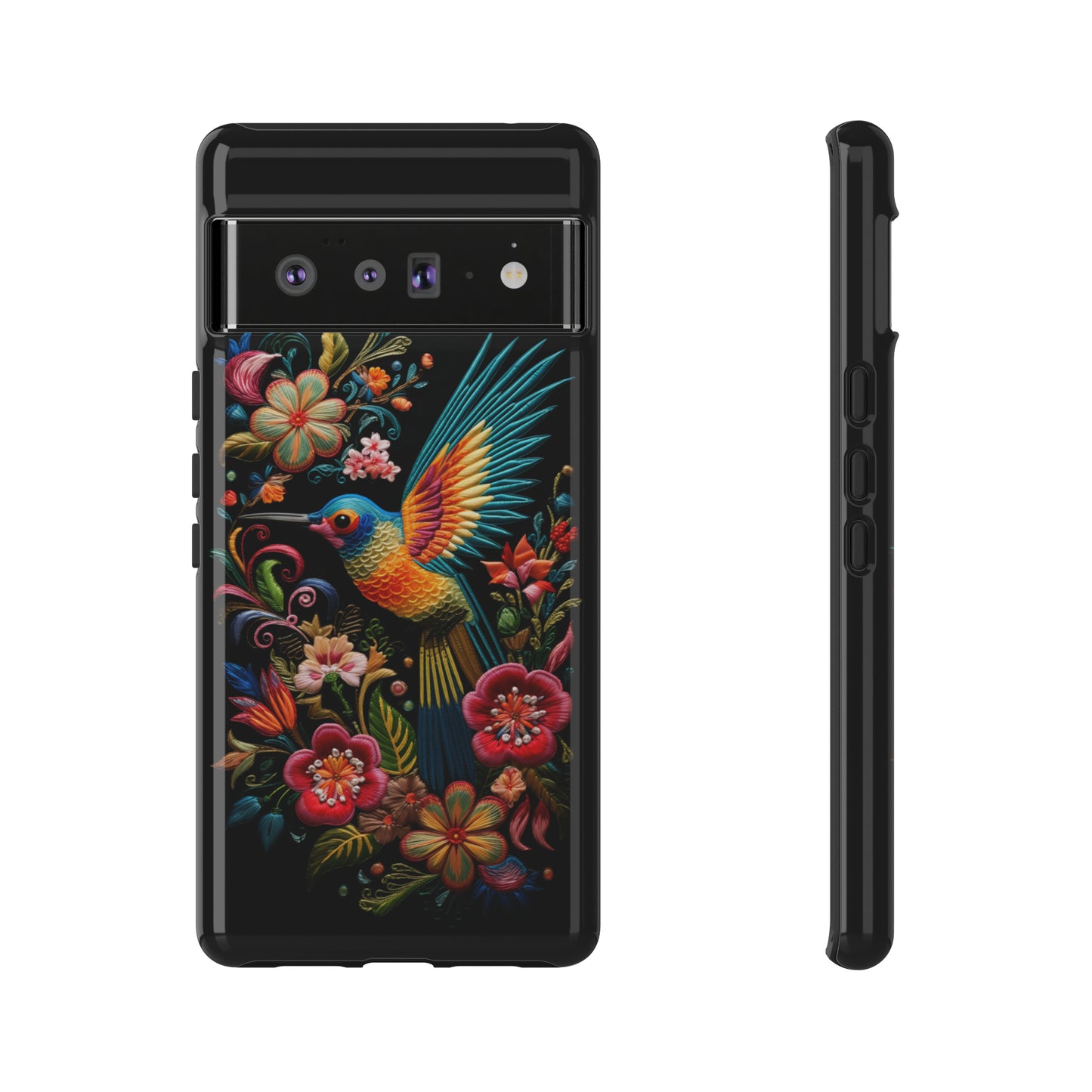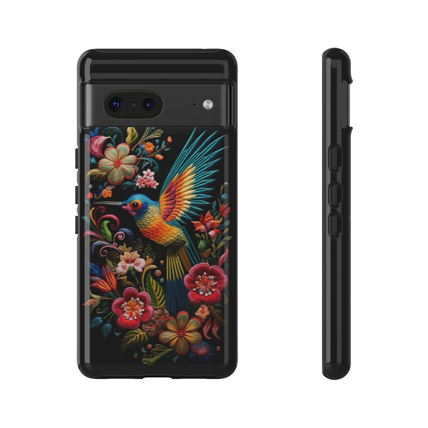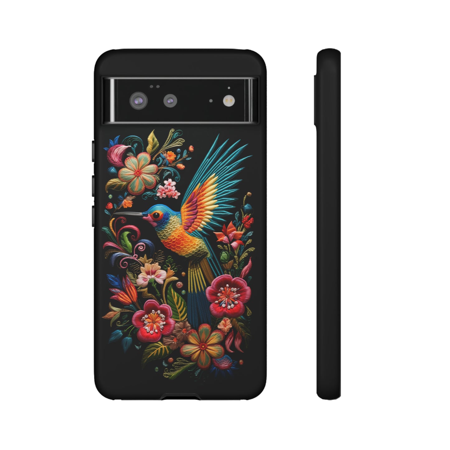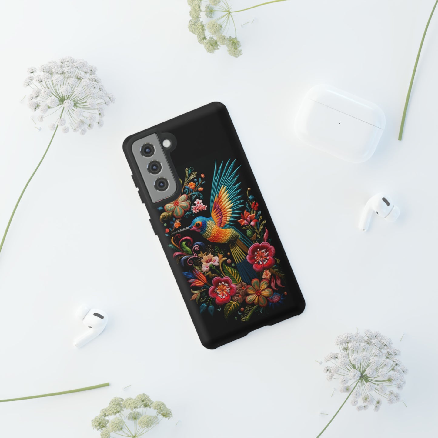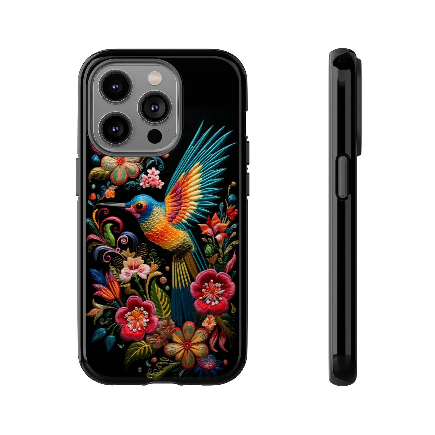 Elevate your phone's style with our Embroidery Style Hummingbird Mexican Art Phone Case. A unique blend of Mexican art and modern protection for iPhone, Samsung Galaxy, and Google Pixel