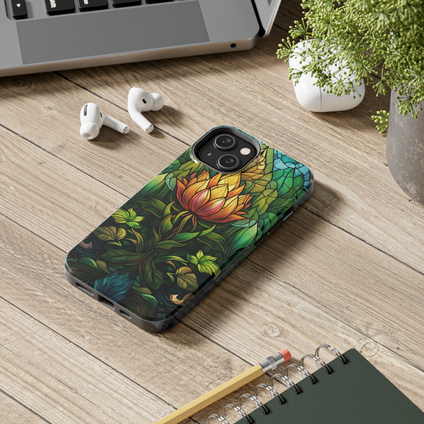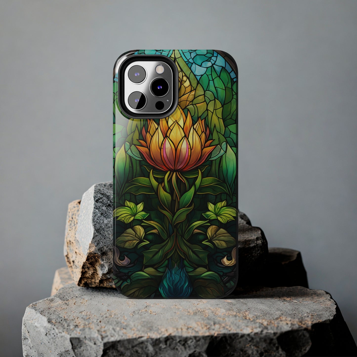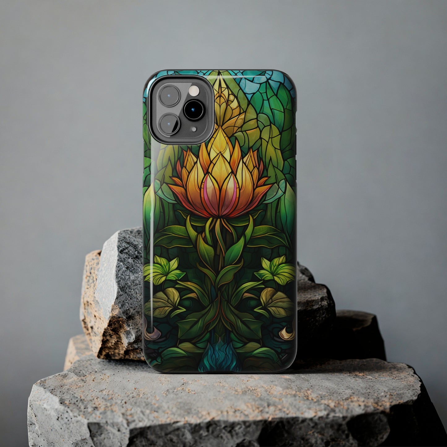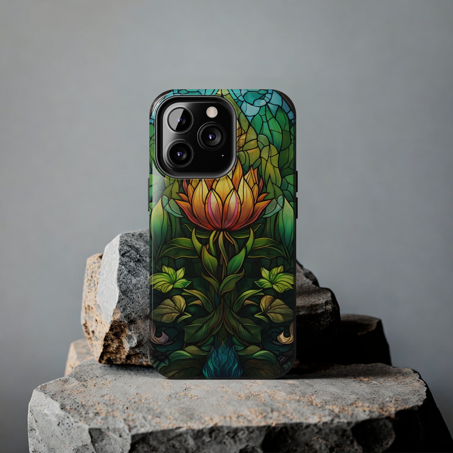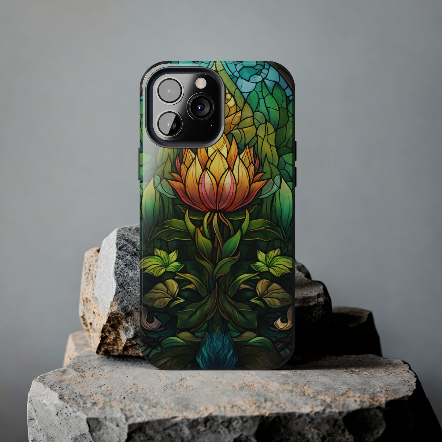 Protect your iPhone with a case that captures the elegance and tranquility of the lotus flower in stunning stained glass. Whether you're a fan of floral aesthetics, appreciate the symbolism of the lotus flower, or simply love the artistic beauty it represents, this case is sure to add a touch of serenity and natural elegance to your device.