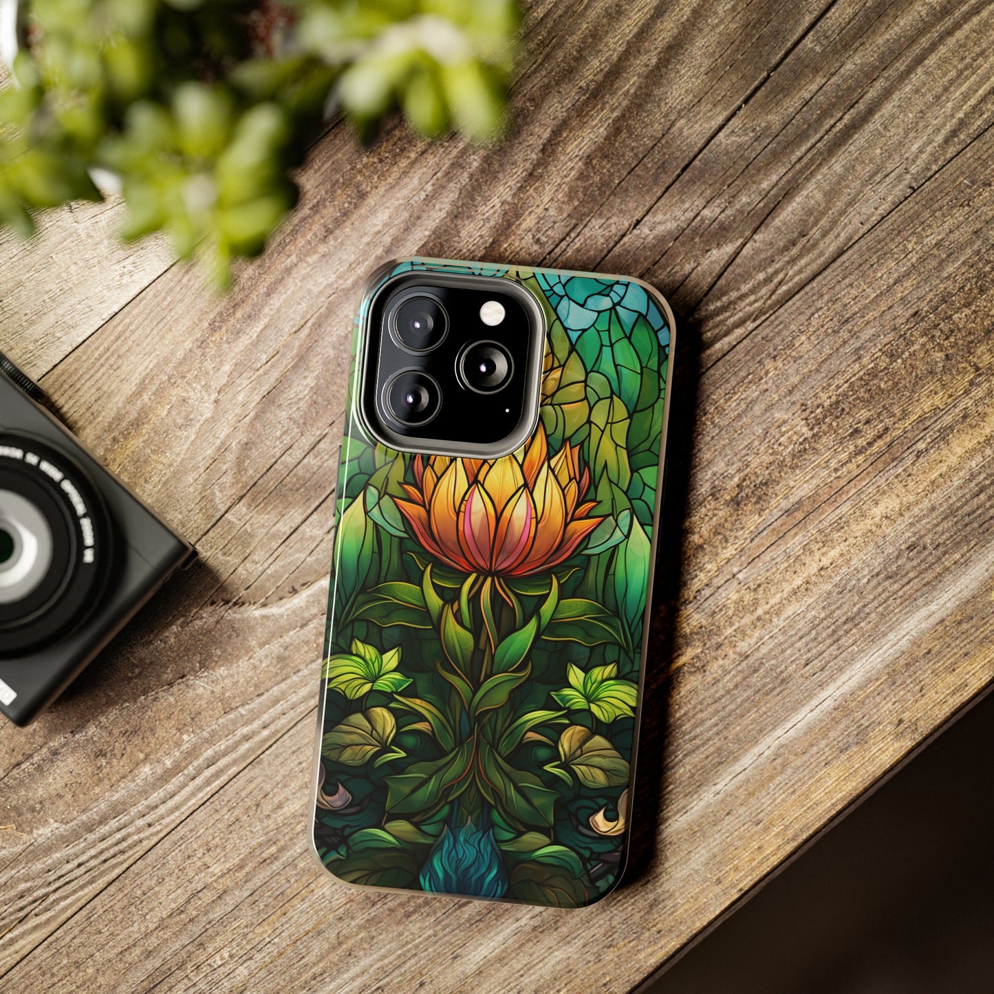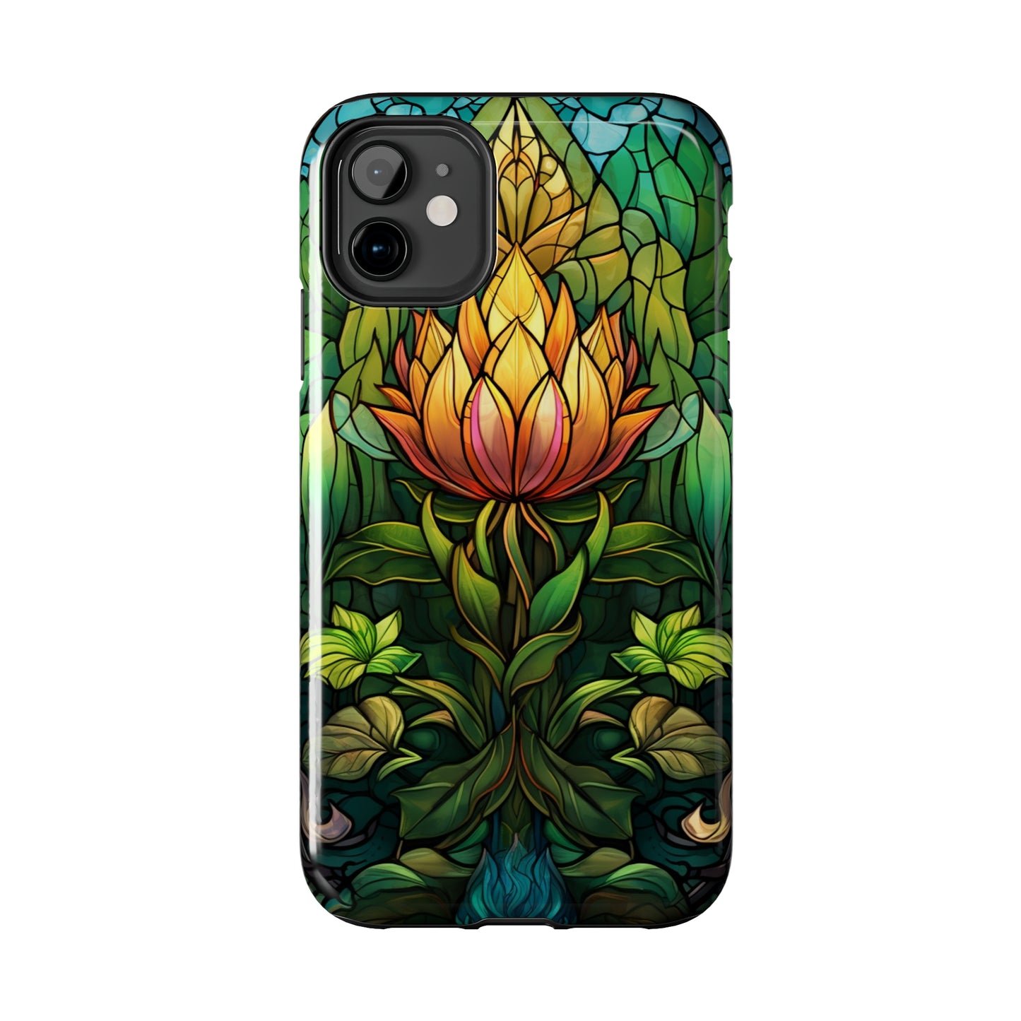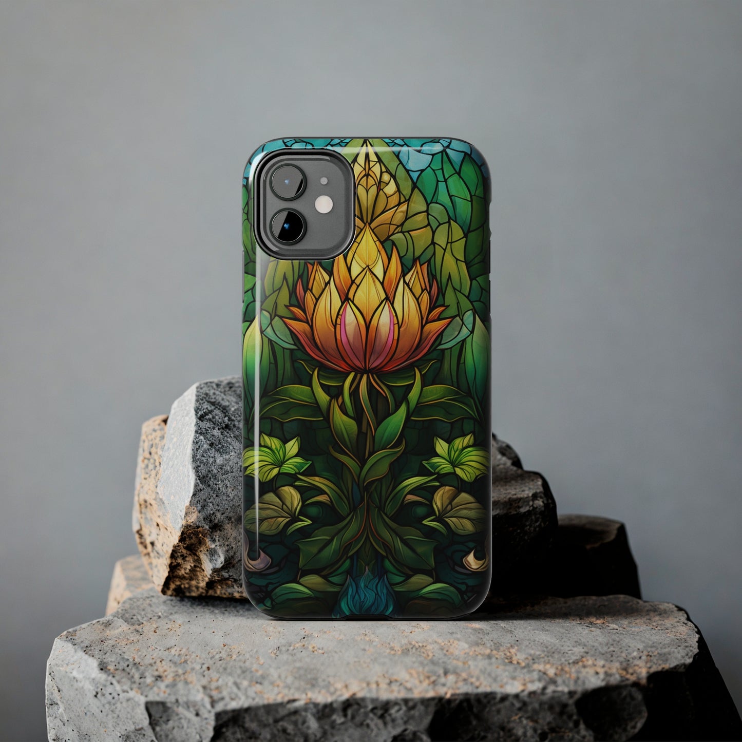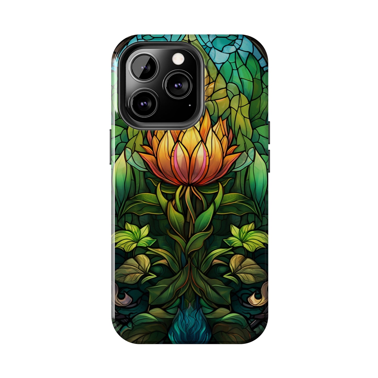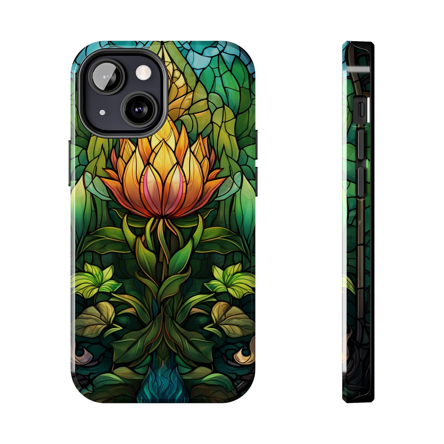 Protect your iPhone with a case that captures the elegance and tranquility of the lotus flower in stunning stained glass. Whether you're a fan of floral aesthetics, appreciate the symbolism of the lotus flower, or simply love the artistic beauty it represents, this case is sure to add a touch of serenity and natural elegance to your device.
