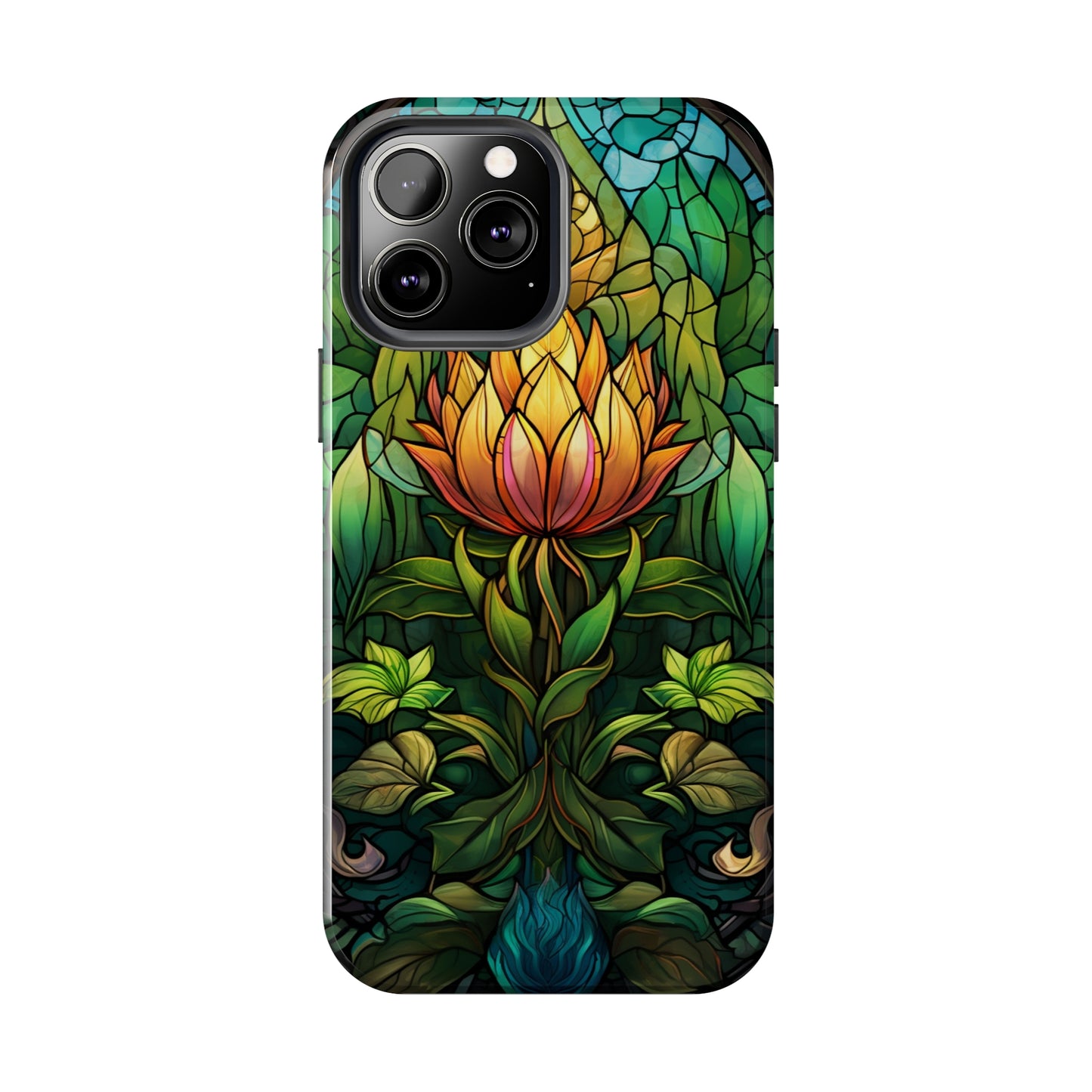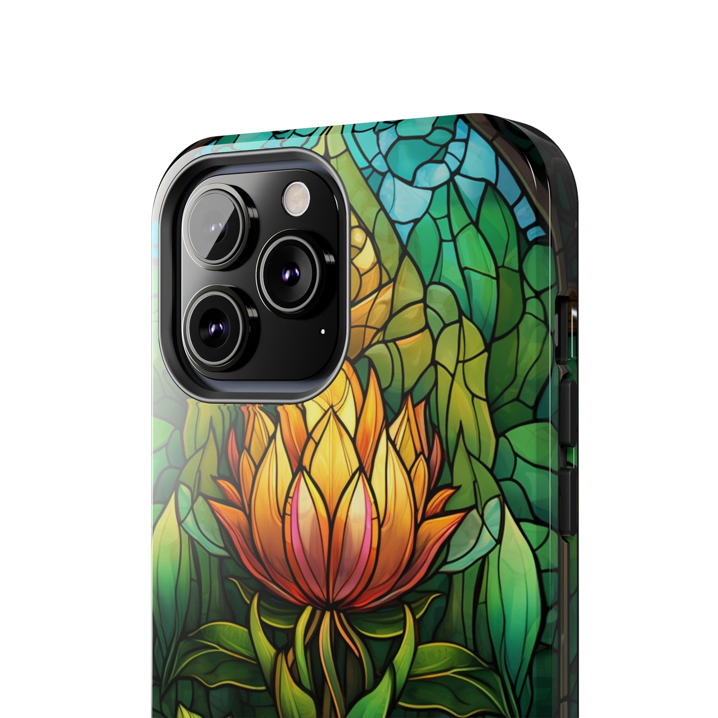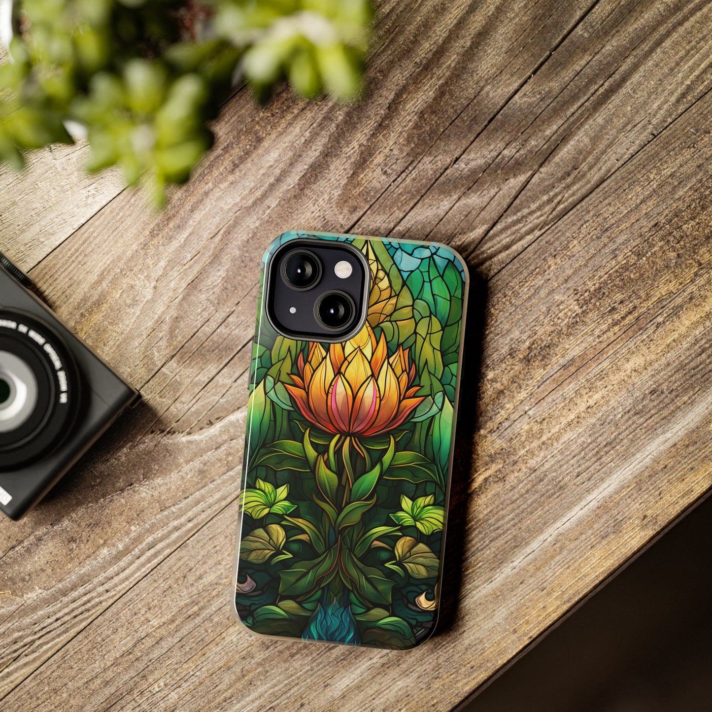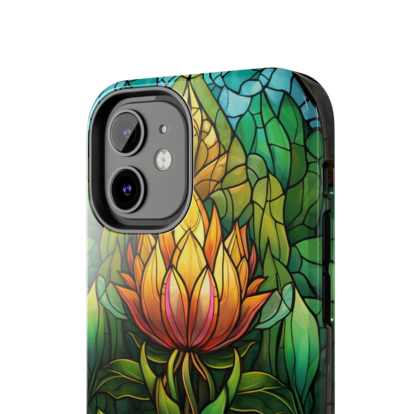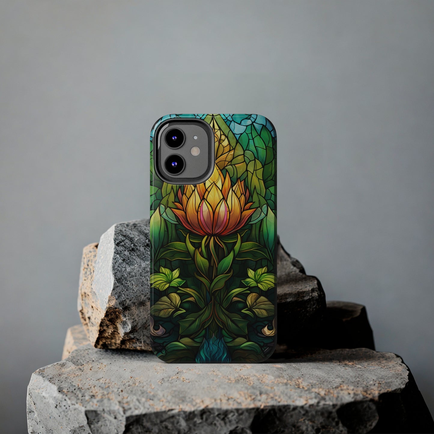 Protect your iPhone with a case that captures the elegance and tranquility of the lotus flower in stunning stained glass. Whether you're a fan of floral aesthetics, appreciate the symbolism of the lotus flower, or simply love the artistic beauty it represents, this case is sure to add a touch of serenity and natural elegance to your device.