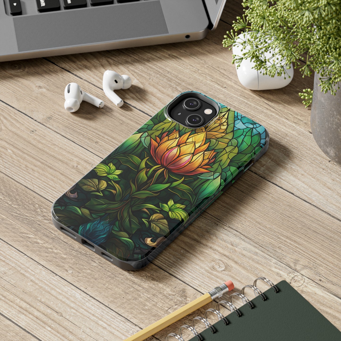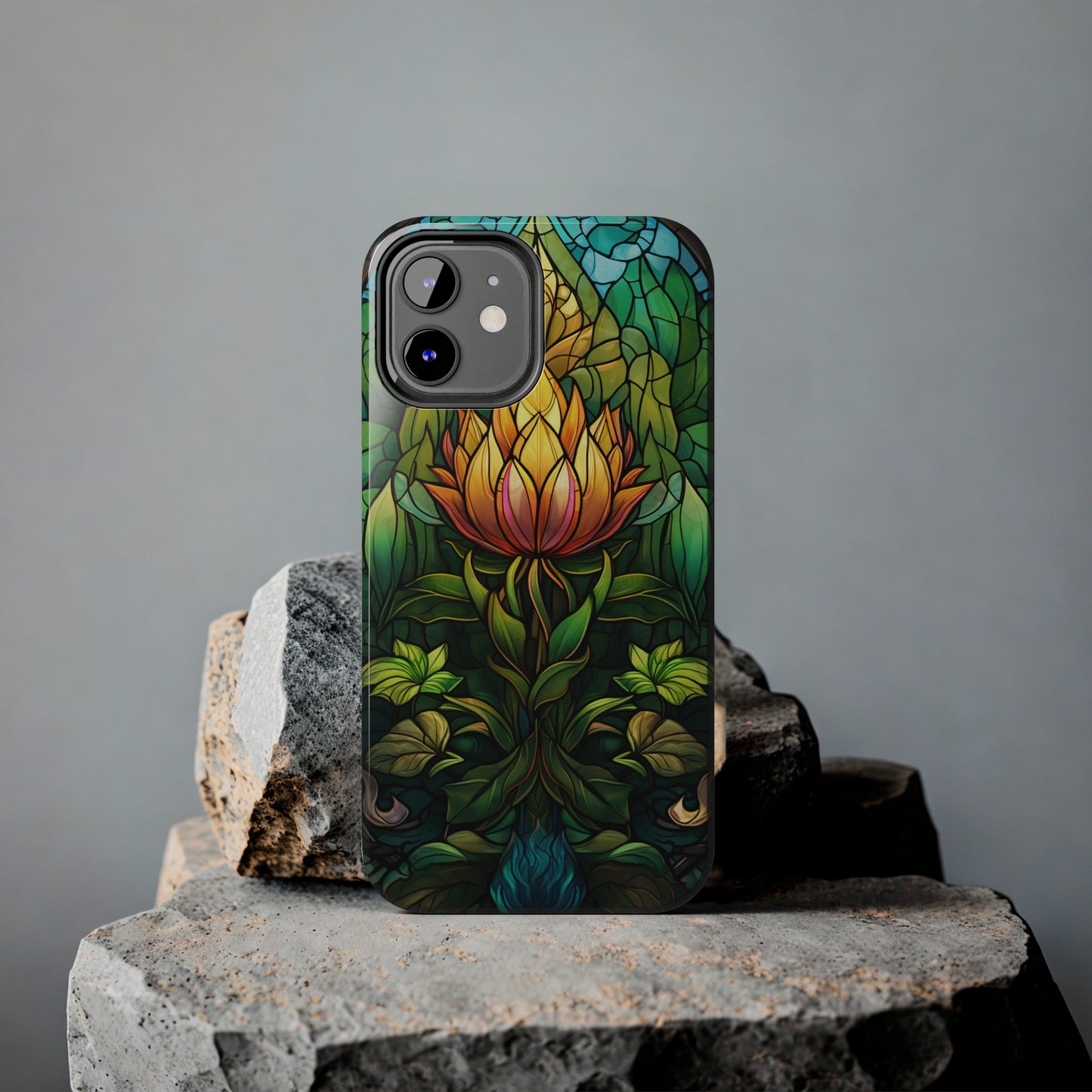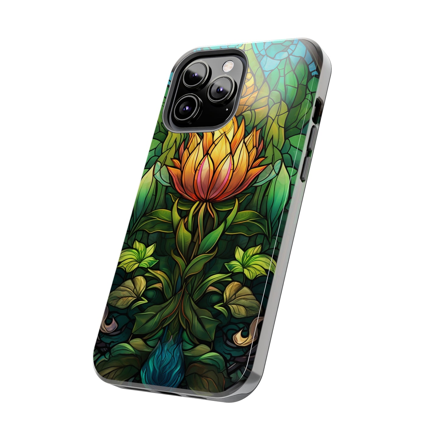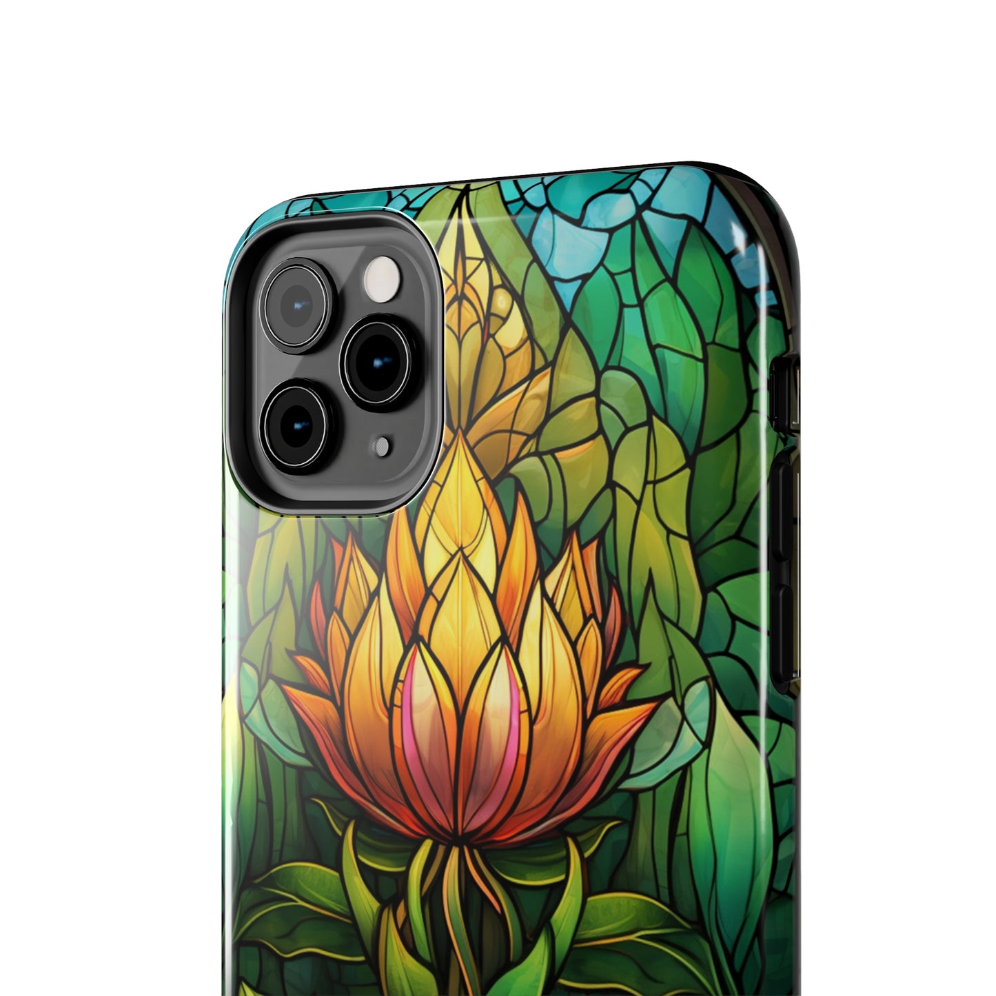Protect your iPhone with a case that captures the elegance and tranquility of the lotus flower in stunning stained glass. Whether you're a fan of floral aesthetics, appreciate the symbolism of the lotus flower, or simply love the artistic beauty it represents, this case is sure to add a touch of serenity and natural elegance to your device.