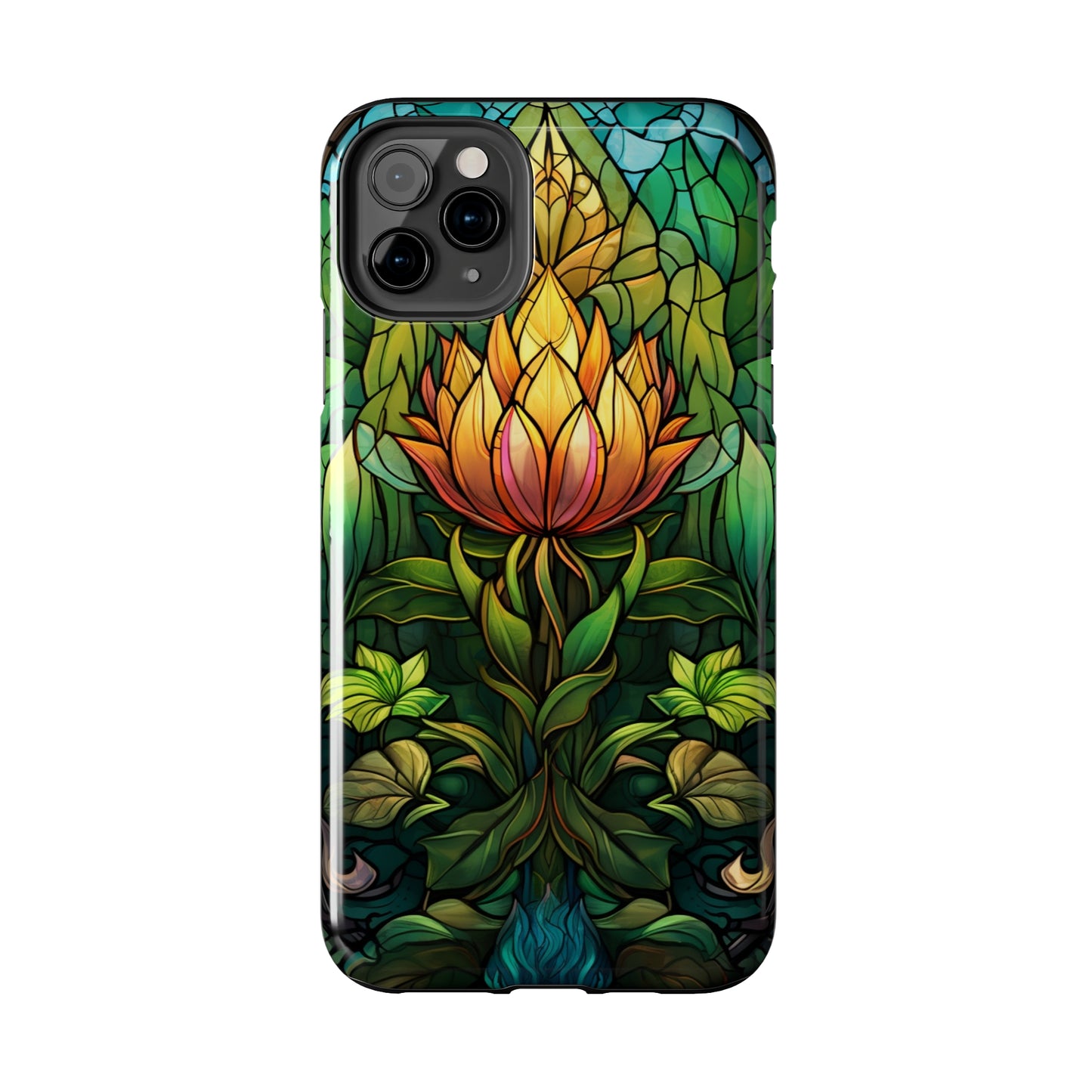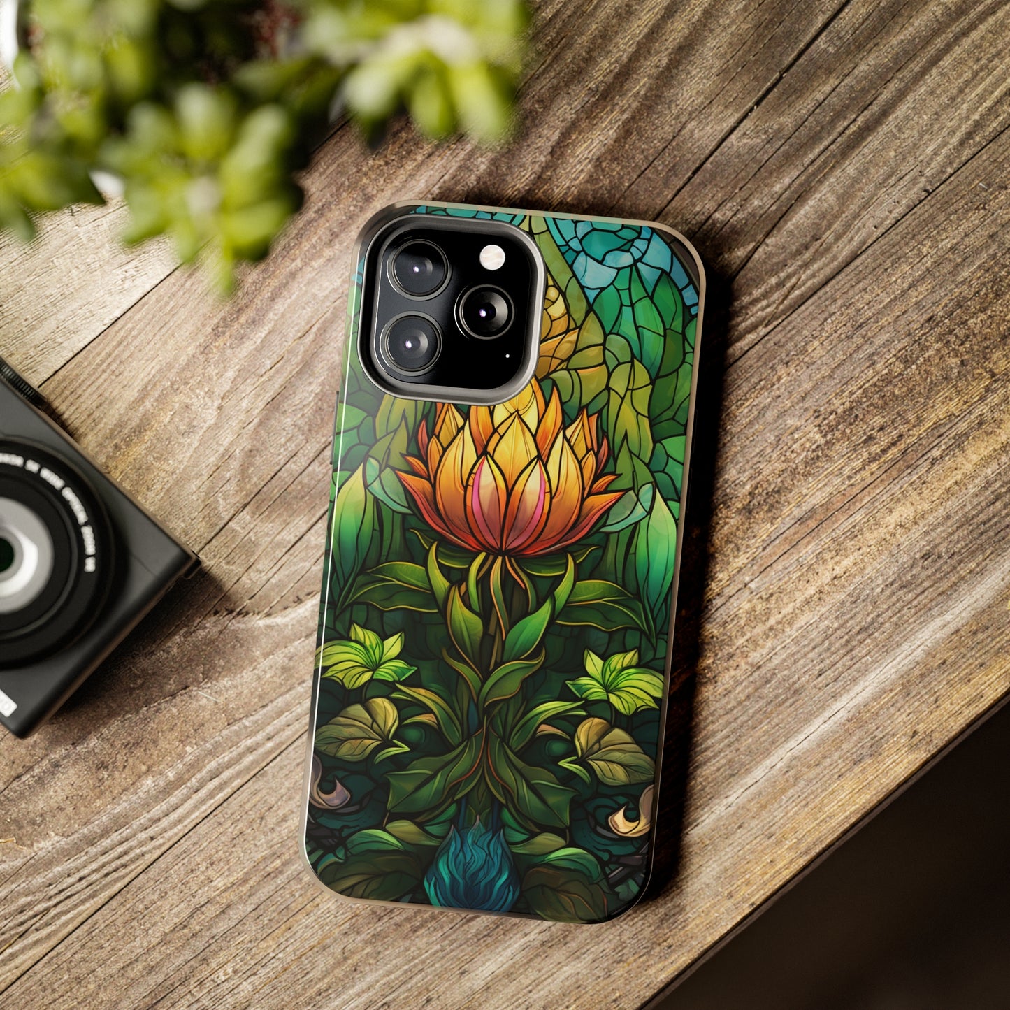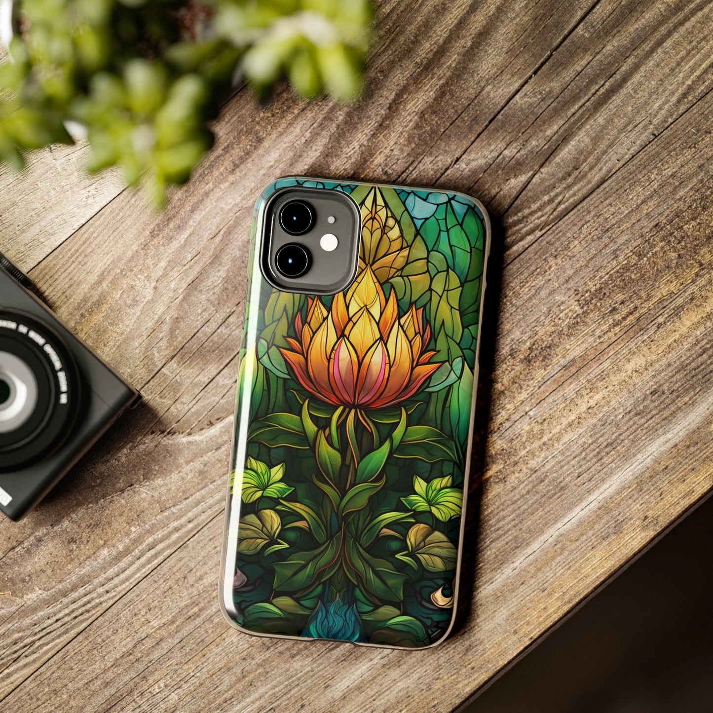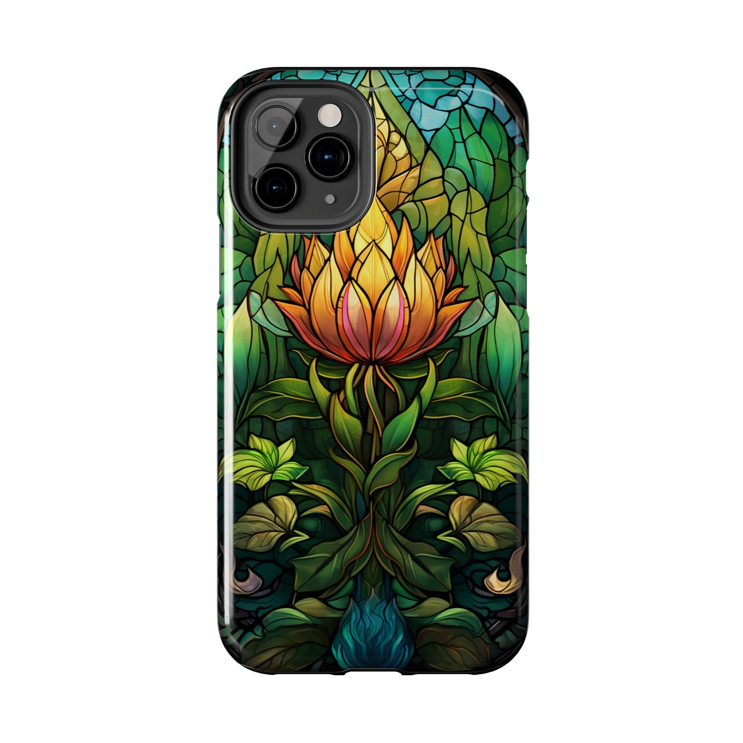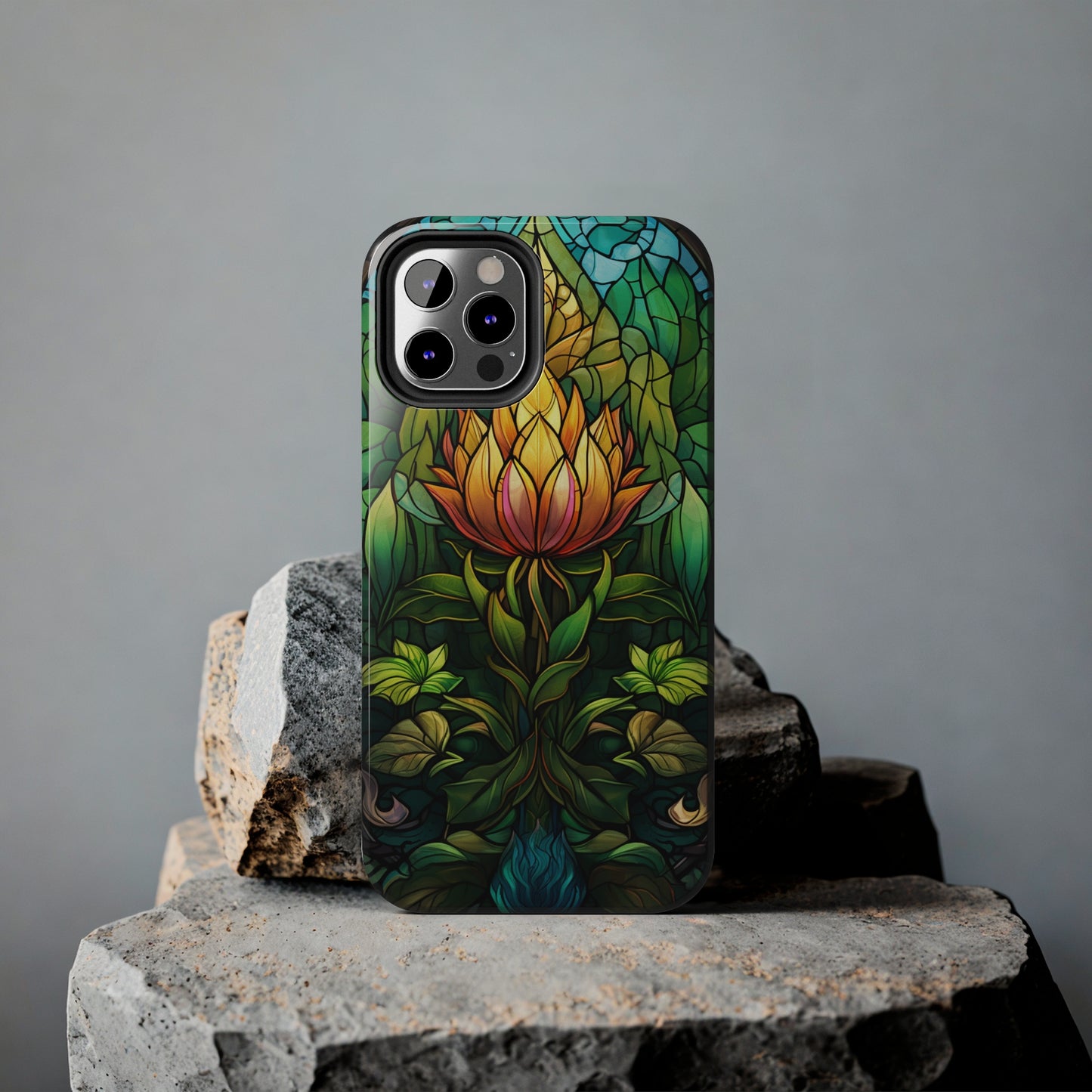 Protect your iPhone with a case that captures the elegance and tranquility of the lotus flower in stunning stained glass. Whether you're a fan of floral aesthetics, appreciate the symbolism of the lotus flower, or simply love the artistic beauty it represents, this case is sure to add a touch of serenity and natural elegance to your device.