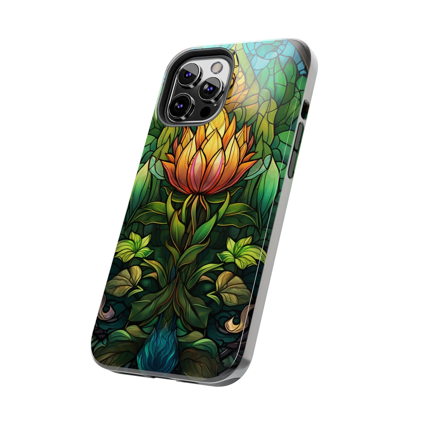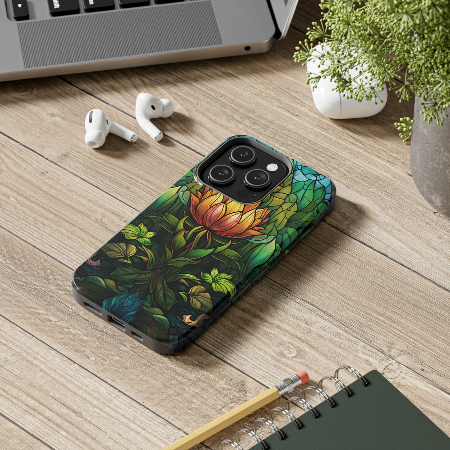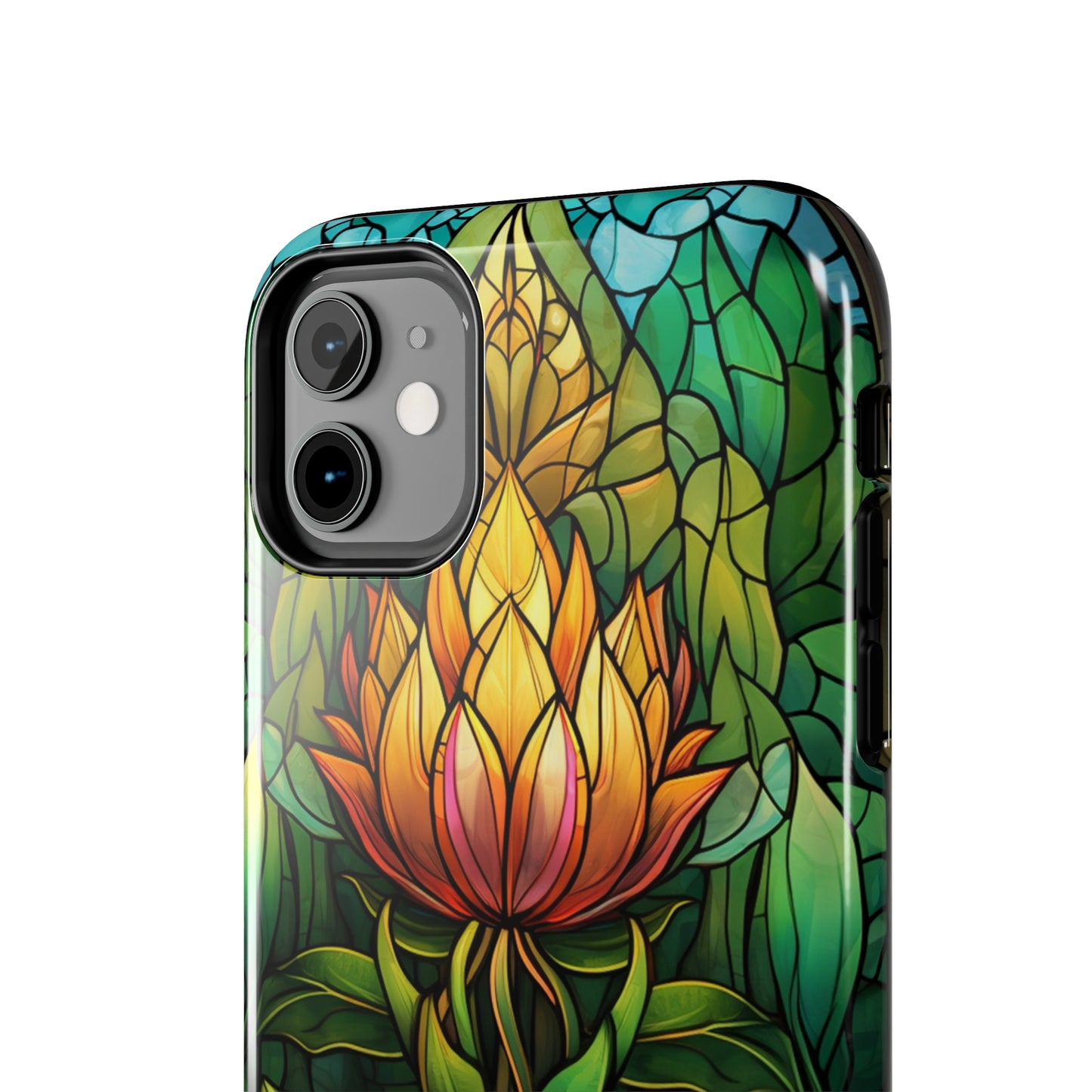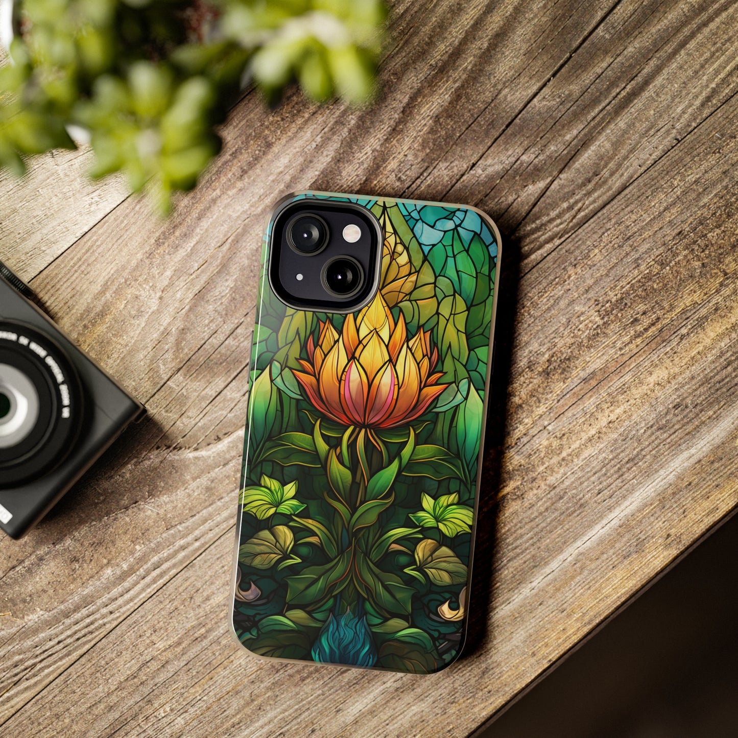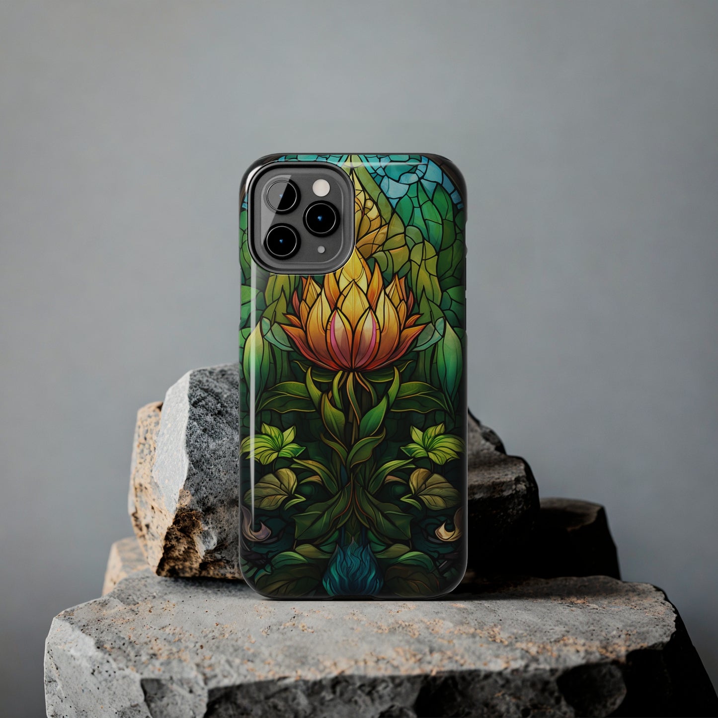 Protect your iPhone with a case that captures the elegance and tranquility of the lotus flower in stunning stained glass. Whether you're a fan of floral aesthetics, appreciate the symbolism of the lotus flower, or simply love the artistic beauty it represents, this case is sure to add a touch of serenity and natural elegance to your device.