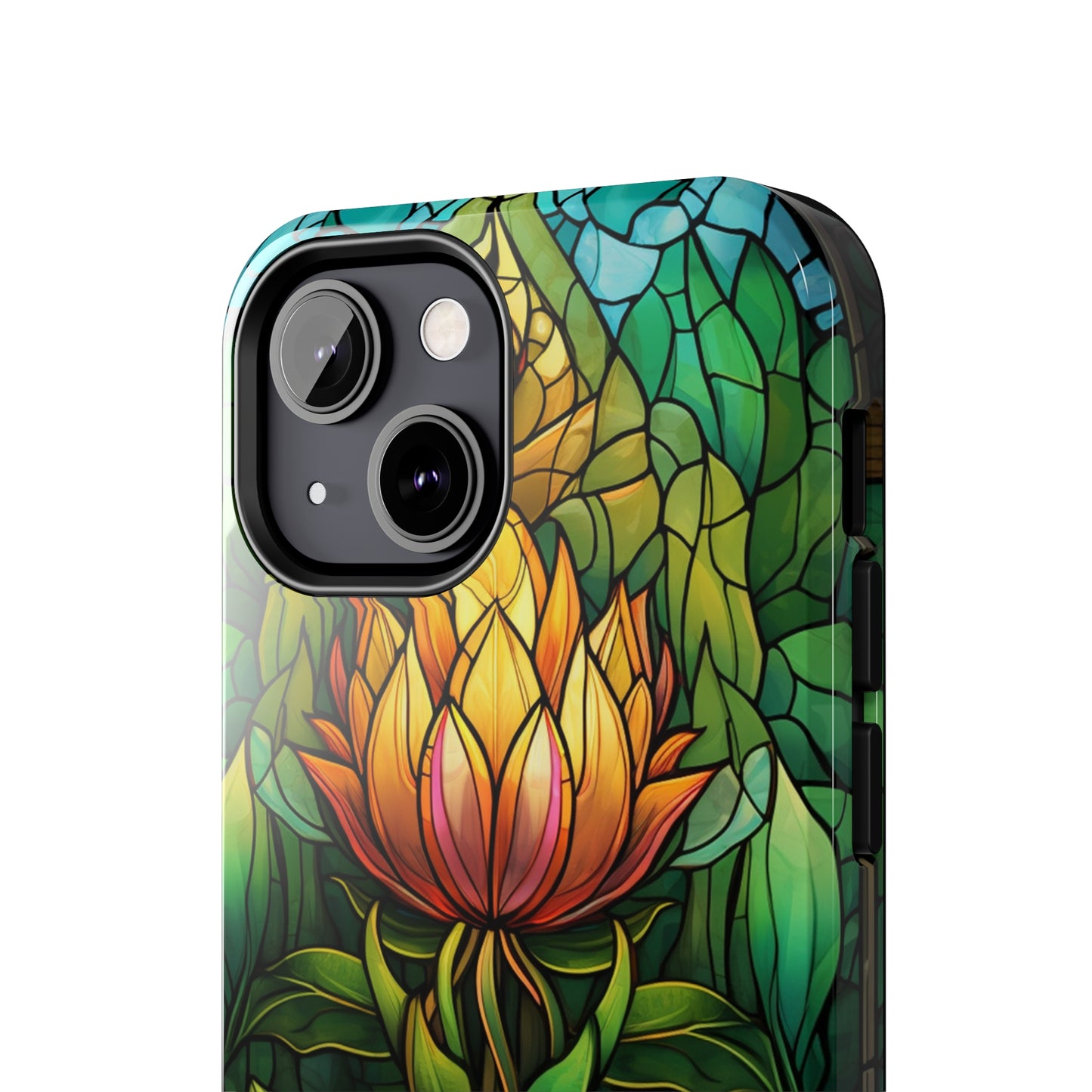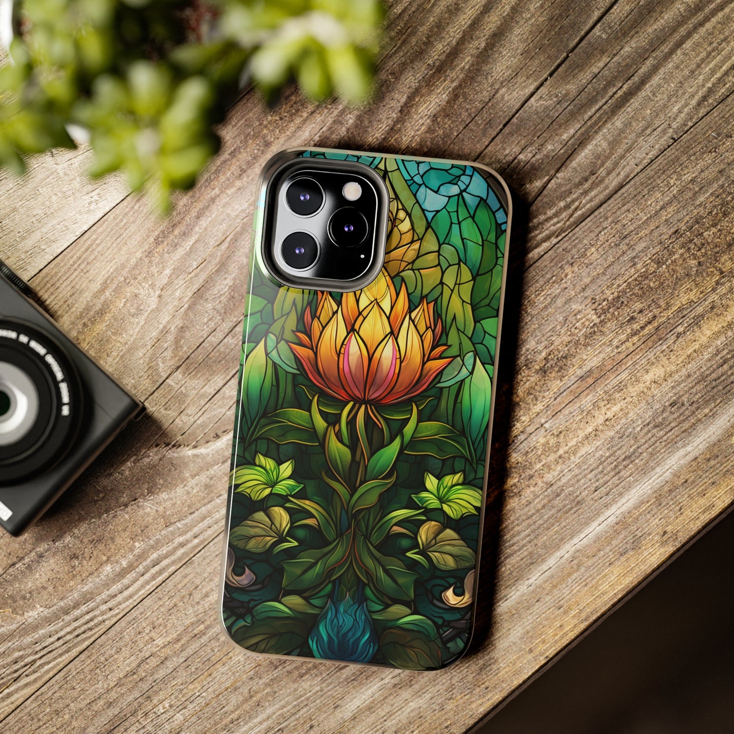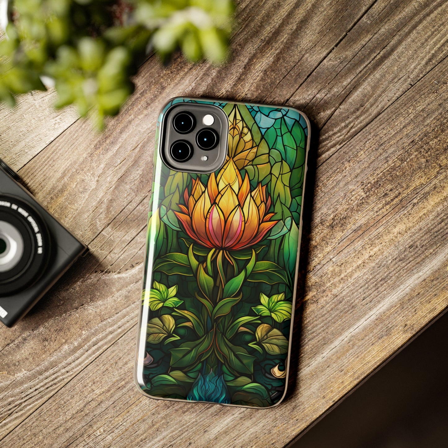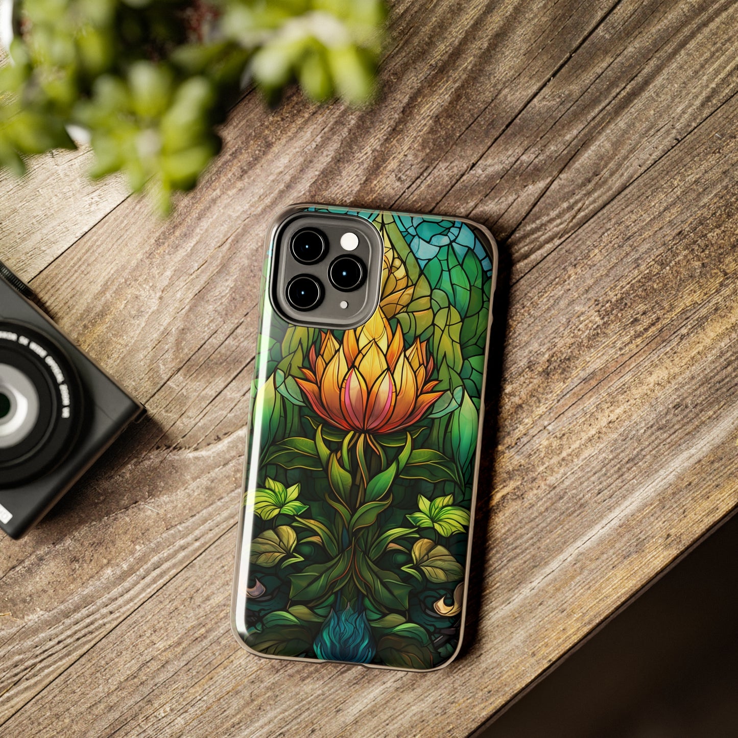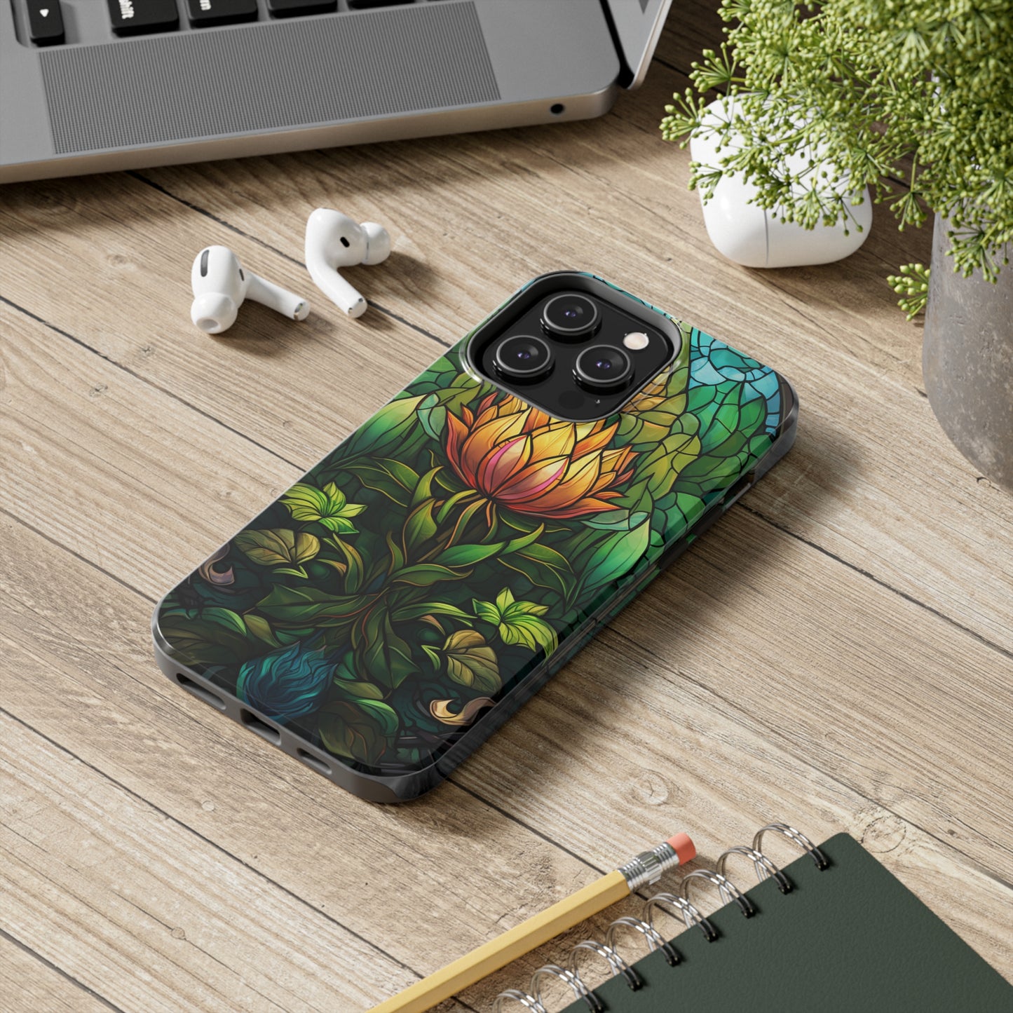 Protect your iPhone with a case that captures the elegance and tranquility of the lotus flower in stunning stained glass. Whether you're a fan of floral aesthetics, appreciate the symbolism of the lotus flower, or simply love the artistic beauty it represents, this case is sure to add a touch of serenity and natural elegance to your device.