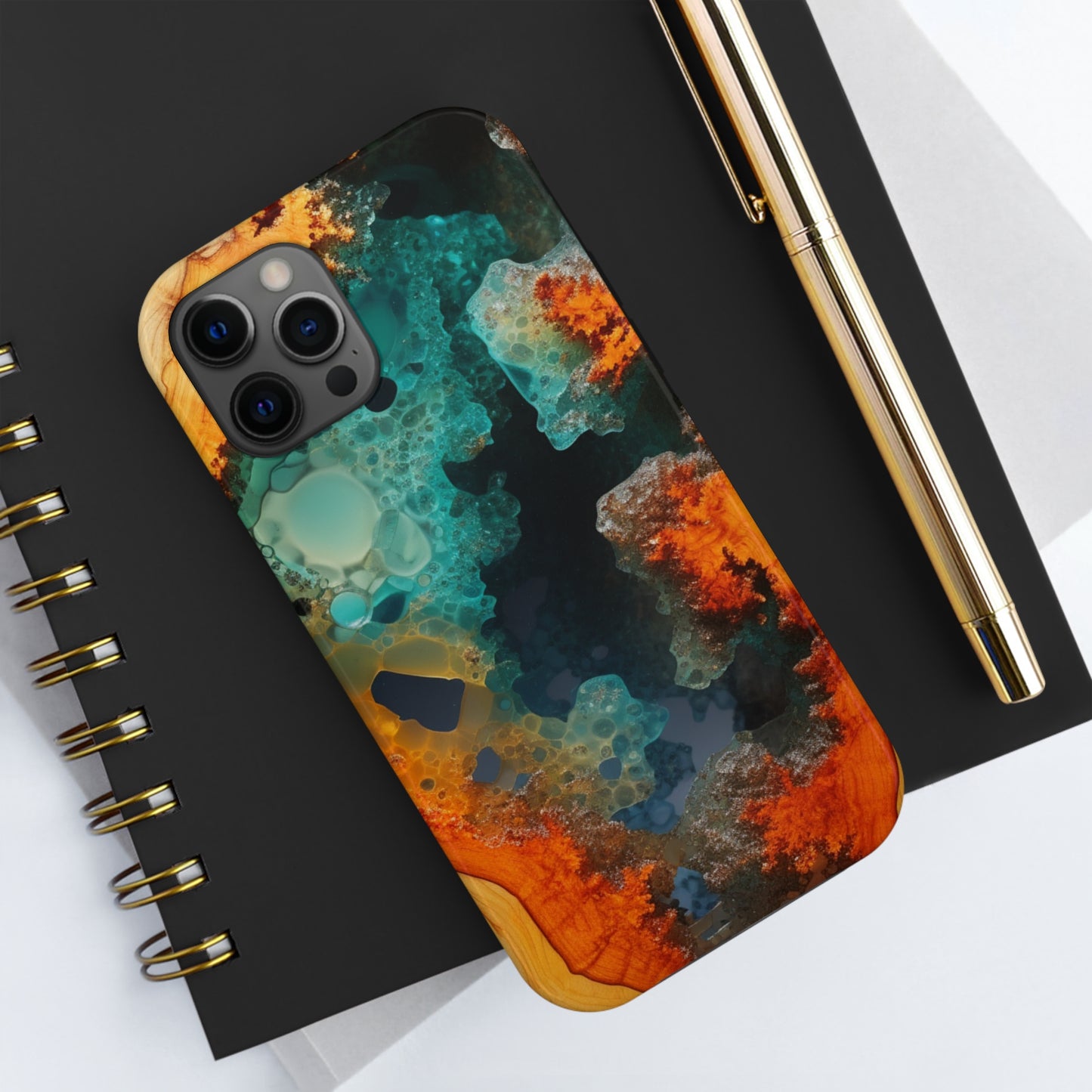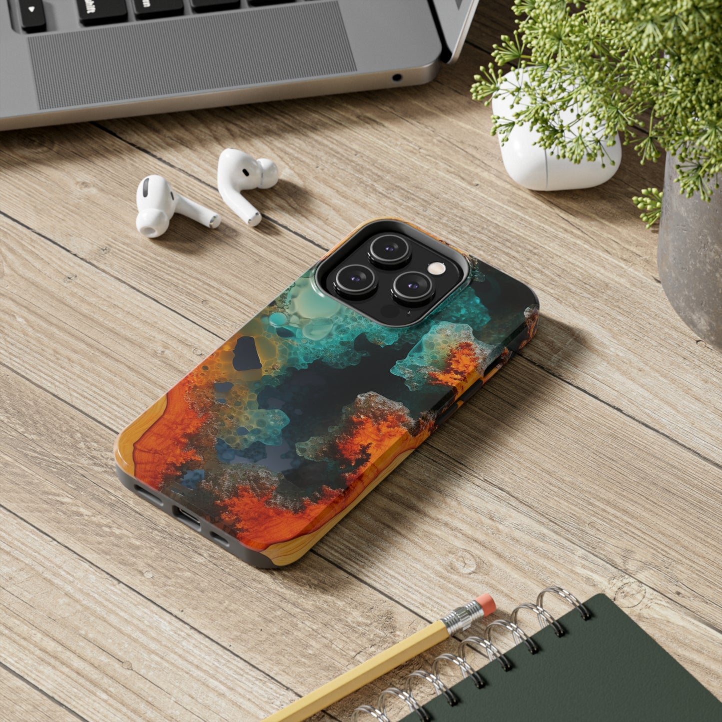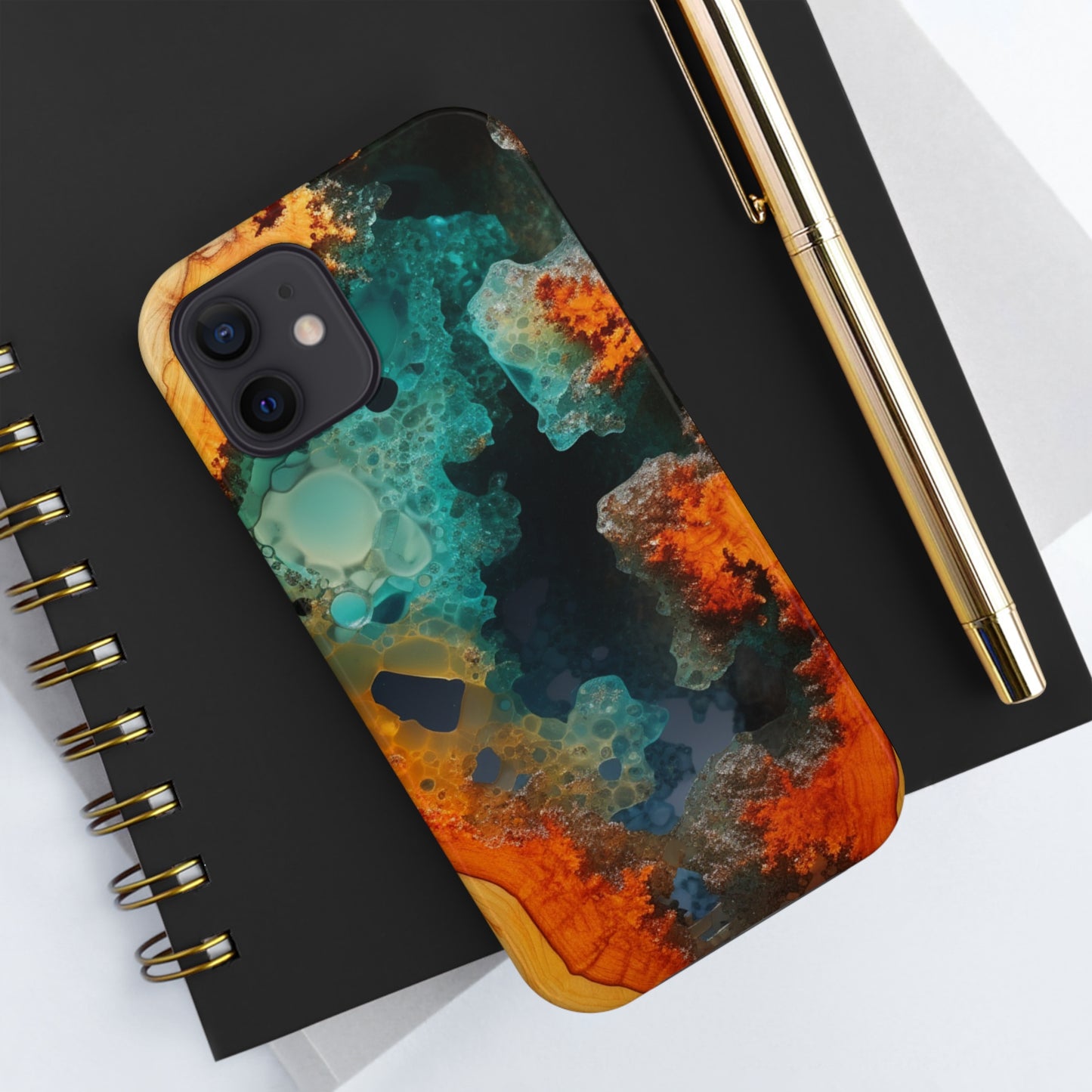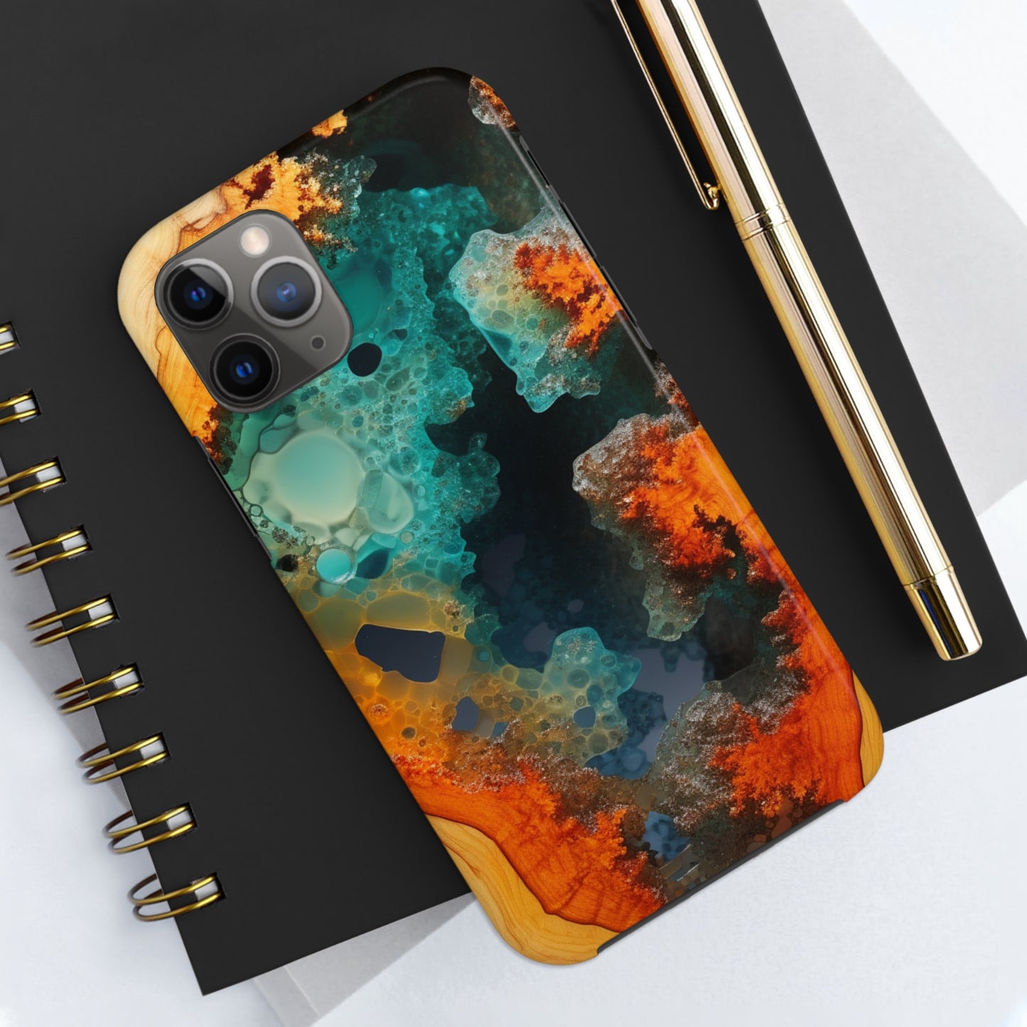Faux Wood and Colorful Epoxy iPhone Case | Embrace the Beauty of Nature and Vibrant Artistry
