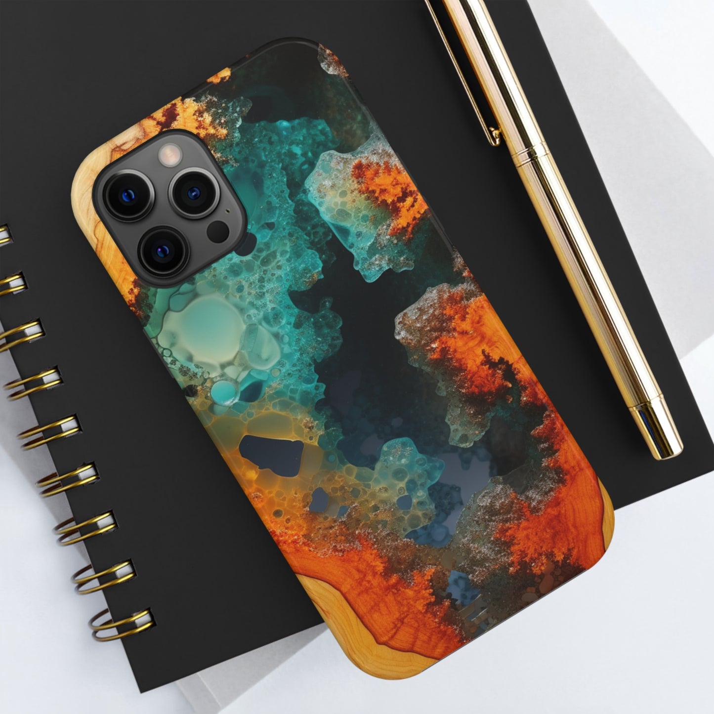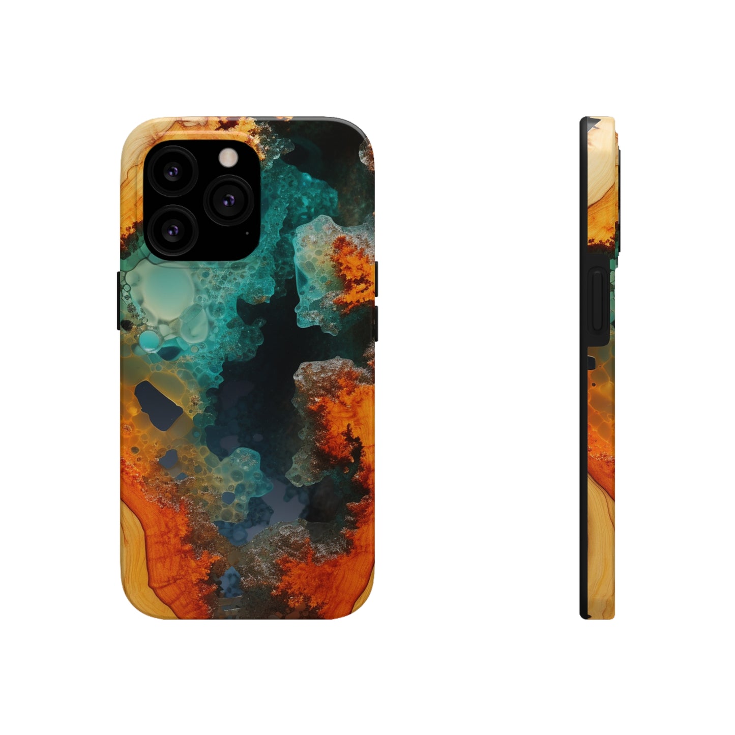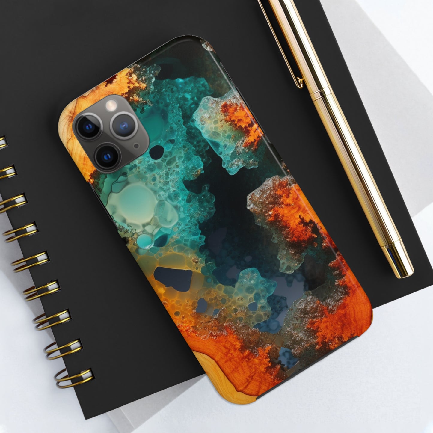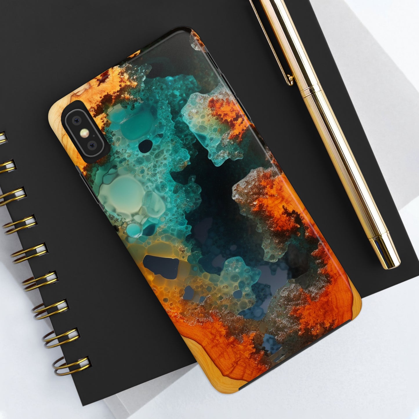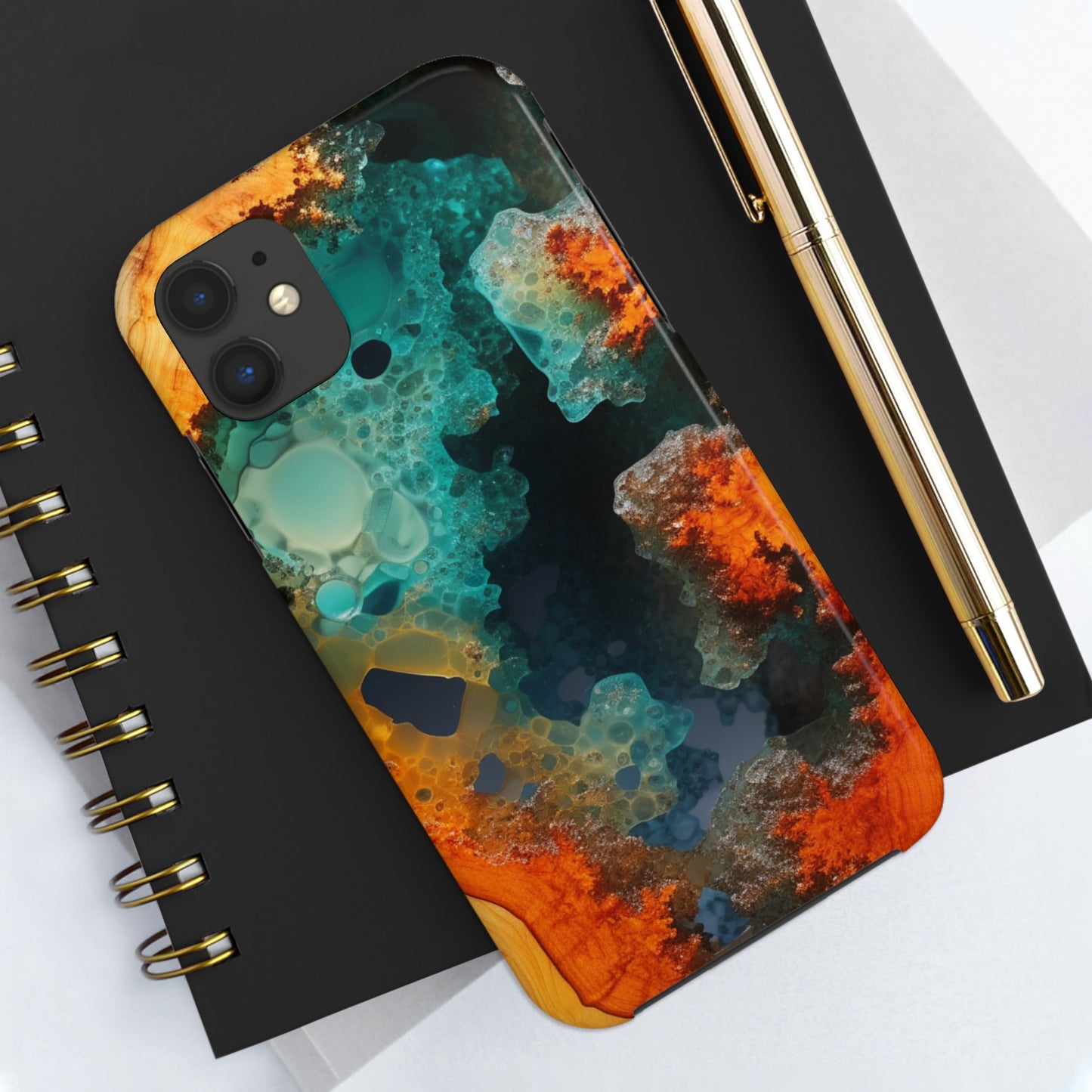 Faux Wood and Colorful Epoxy iPhone Case | Embrace the Beauty of Nature and Vibrant Artistry