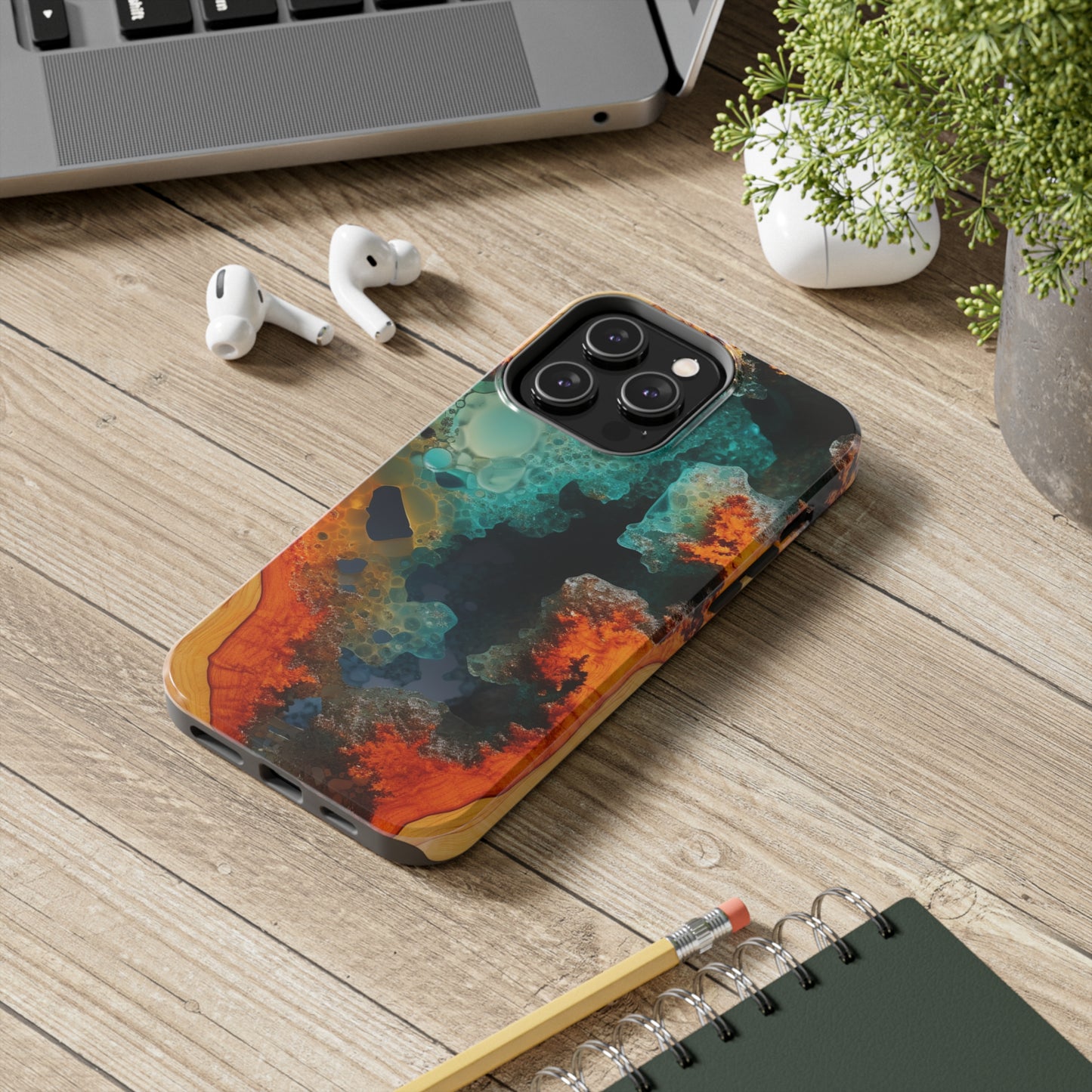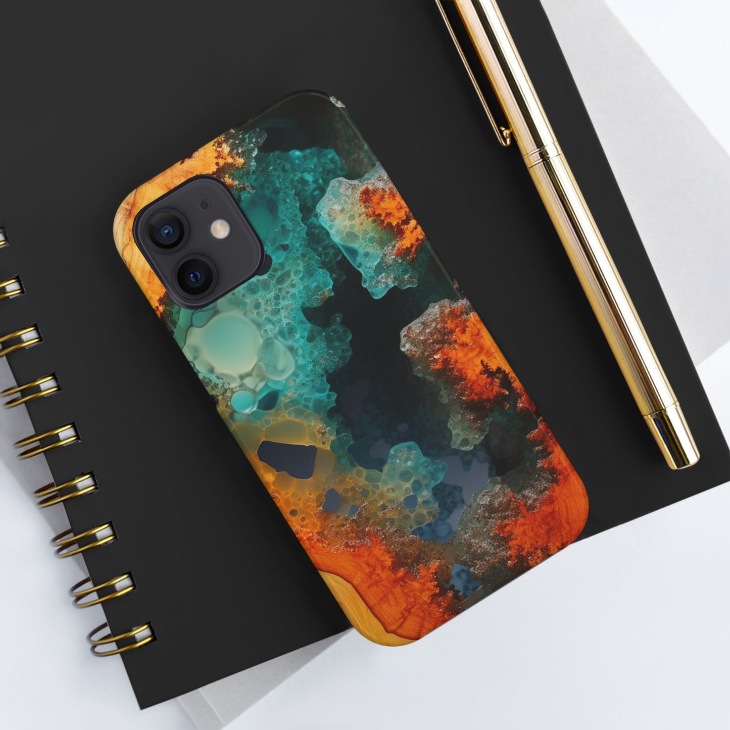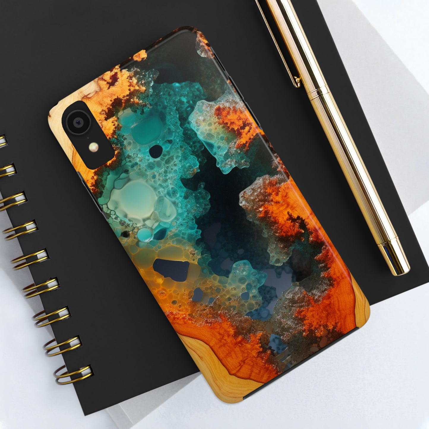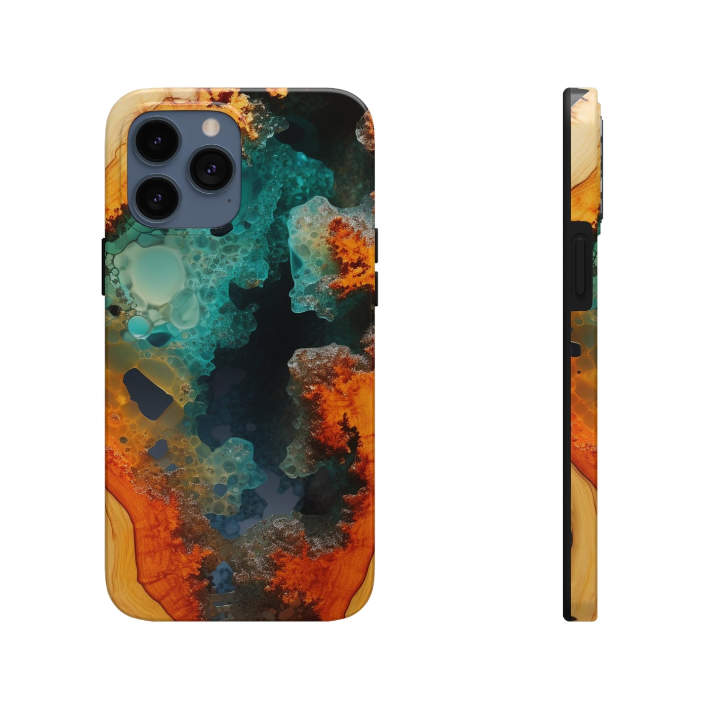 Faux Wood and Colorful Epoxy iPhone Case | Embrace the Beauty of Nature and Vibrant Artistry