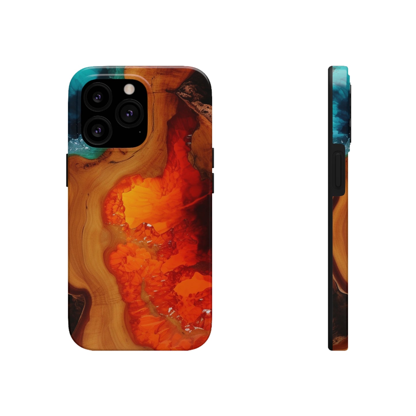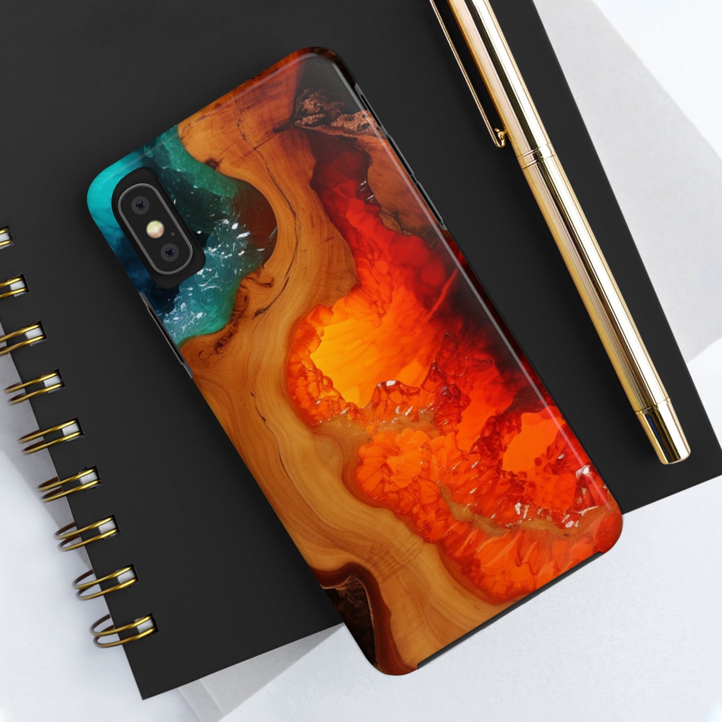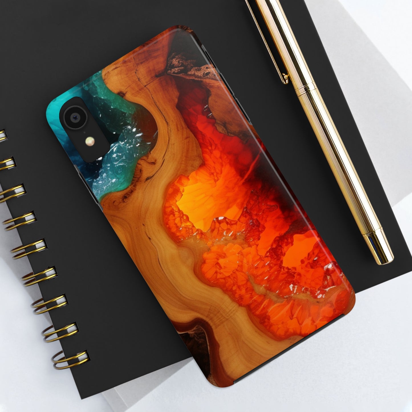 Faux Wood and Colorful Epoxy iPhone Case | Embrace the Beauty of Nature and Vibrant Artistry