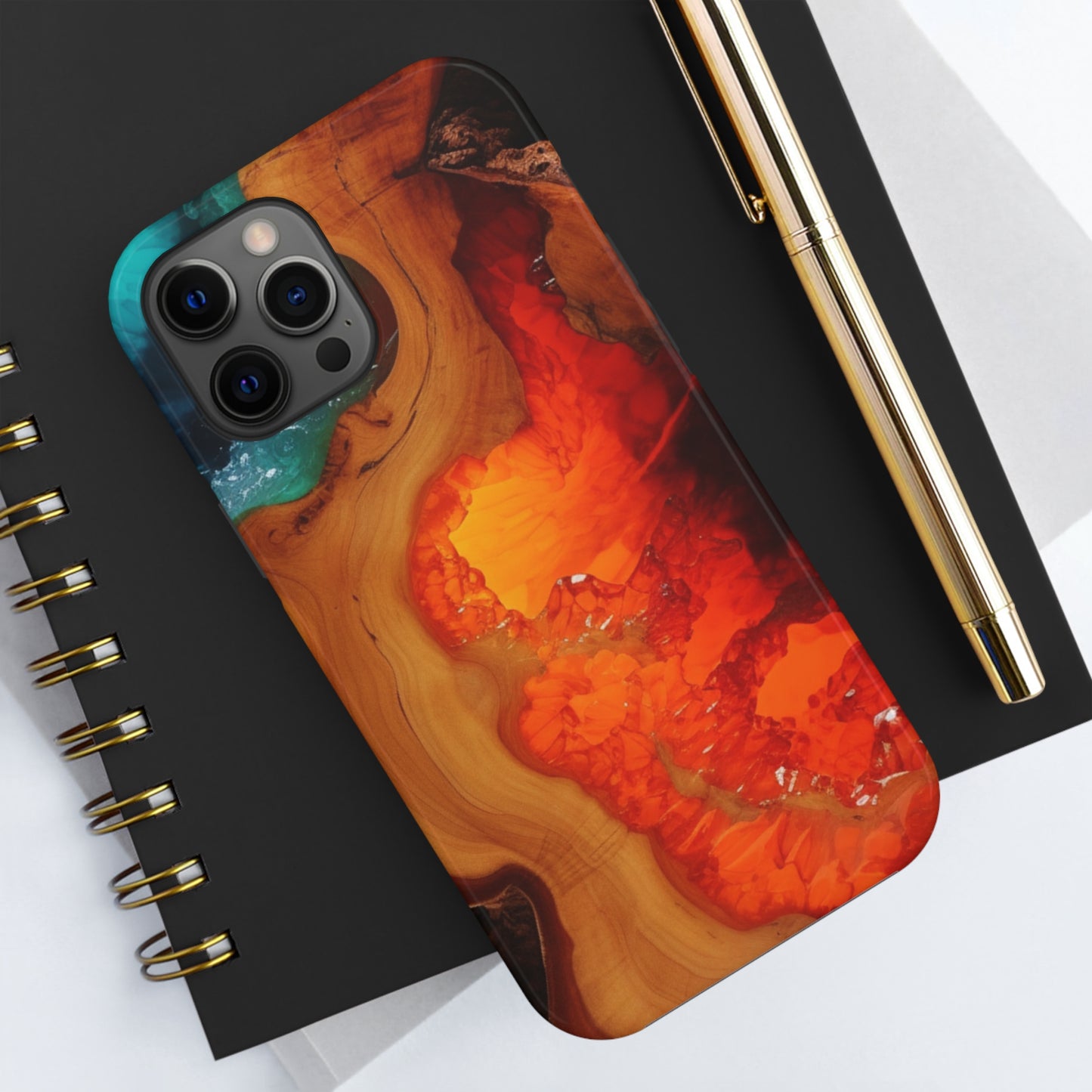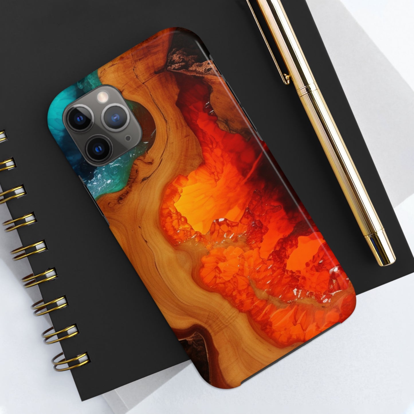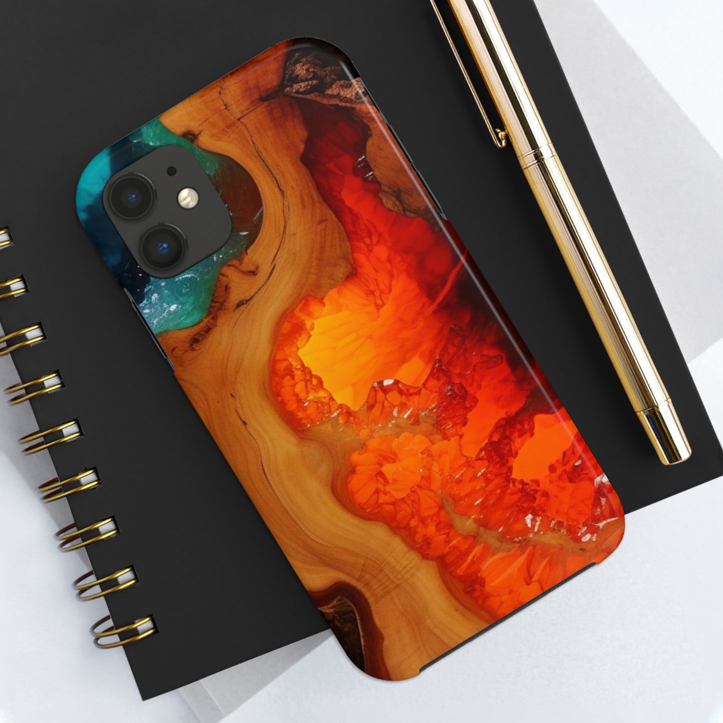 Faux Wood and Colorful Epoxy iPhone Case | Embrace the Beauty of Nature and Vibrant Artistry