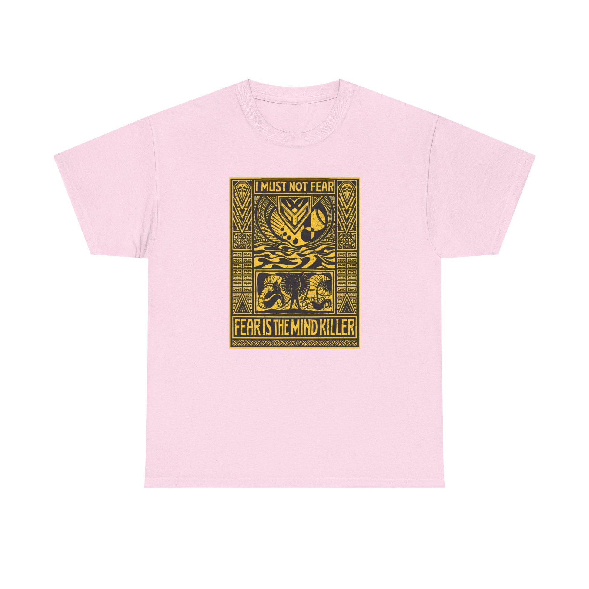 A sci-fi quote t-shirt featuring “Fear Is the Mind Killer,” inspired by classic science fiction philosophy and retro futurist thought.