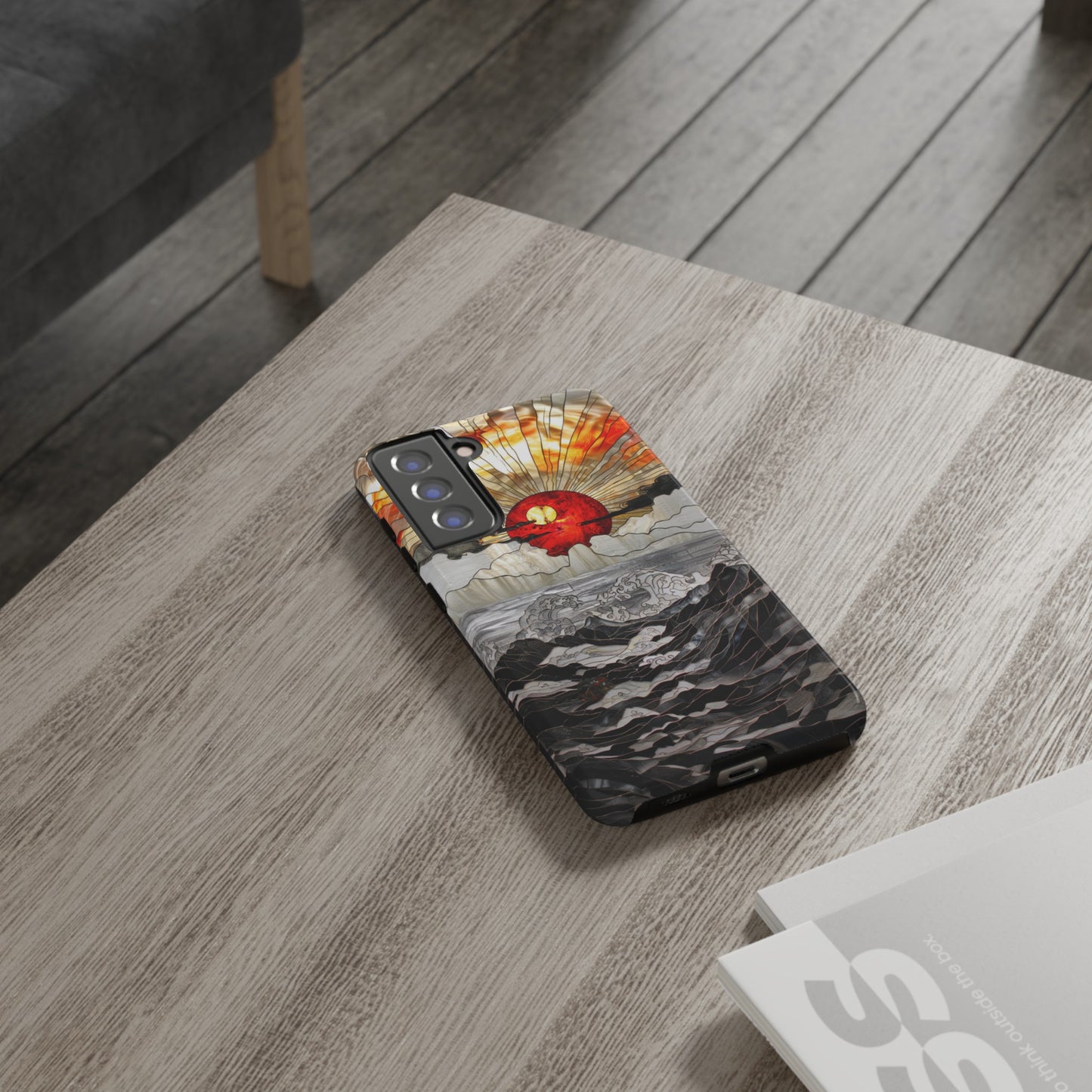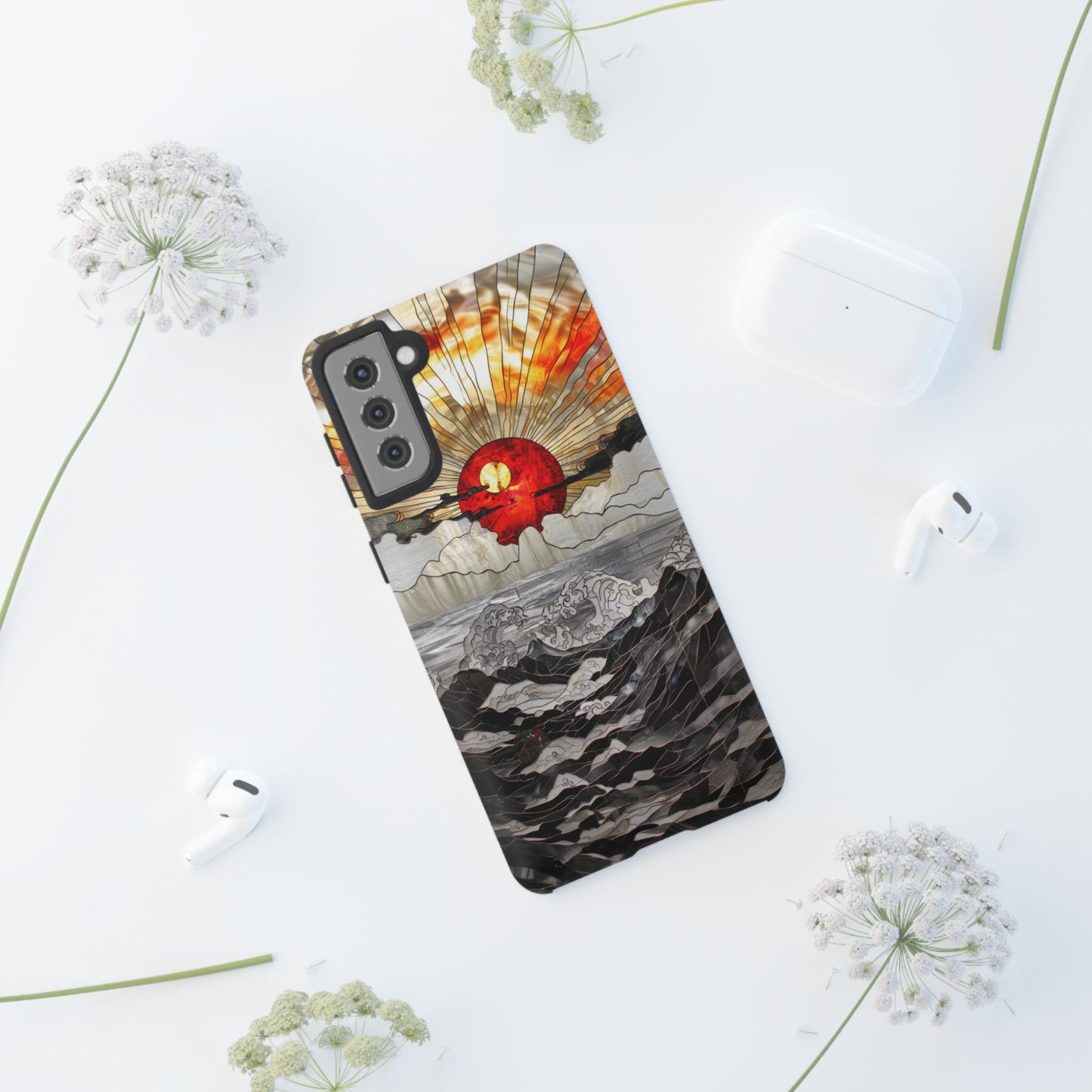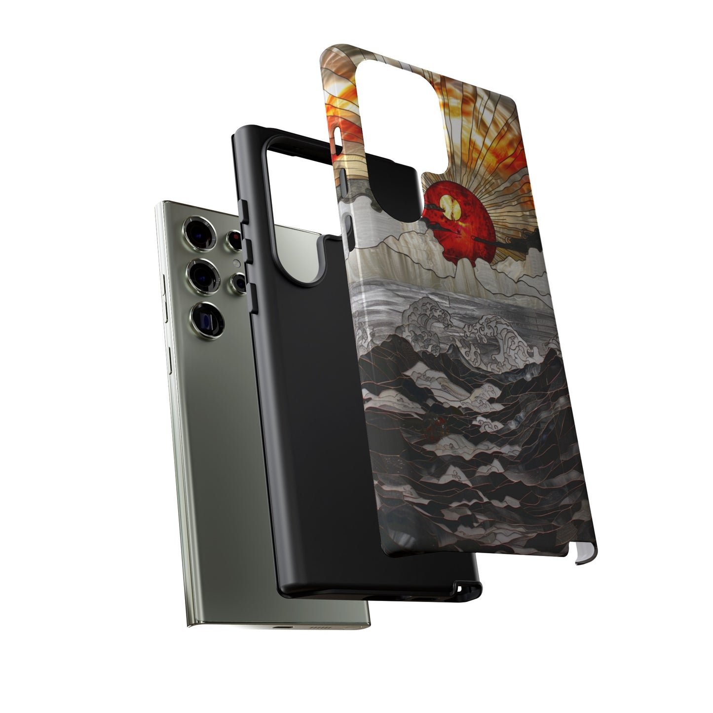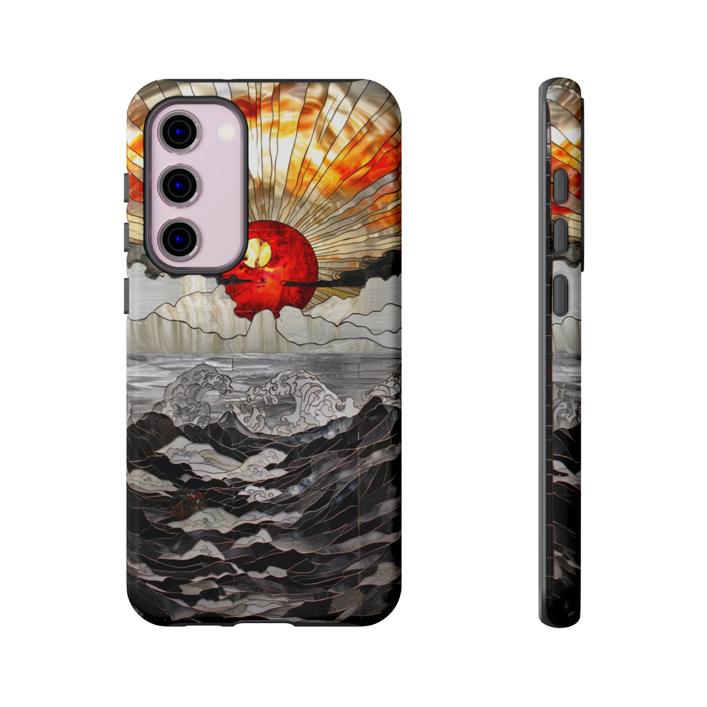 Japanese Rising Sun Phone Case Stained Glass Ocean Wave Phone Cover iPhone 15 Case