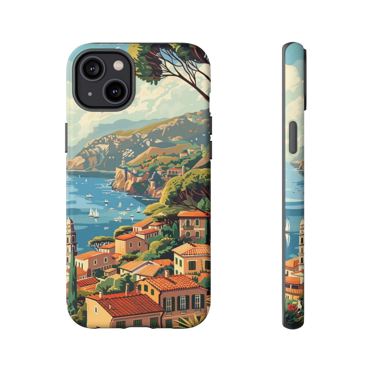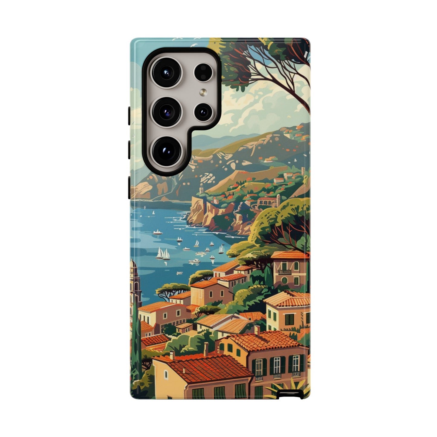Travel back in time to the glamorous French Riviera with our Midcentury French Riviera Landscape Painting Phone Case. Available for iPhone 15, 14, Pro Max, 13, 12 and Samsung Galaxy S24, S23, S22, S21, as well as Google Pixel devices, this case showcases a breathtaking midcentury landscape painting of the famed French coastline. The vivid colors and nostalgic design capture the timeless charm of the Riviera, making it a perfect blend of art and modern protection for your smartphone.