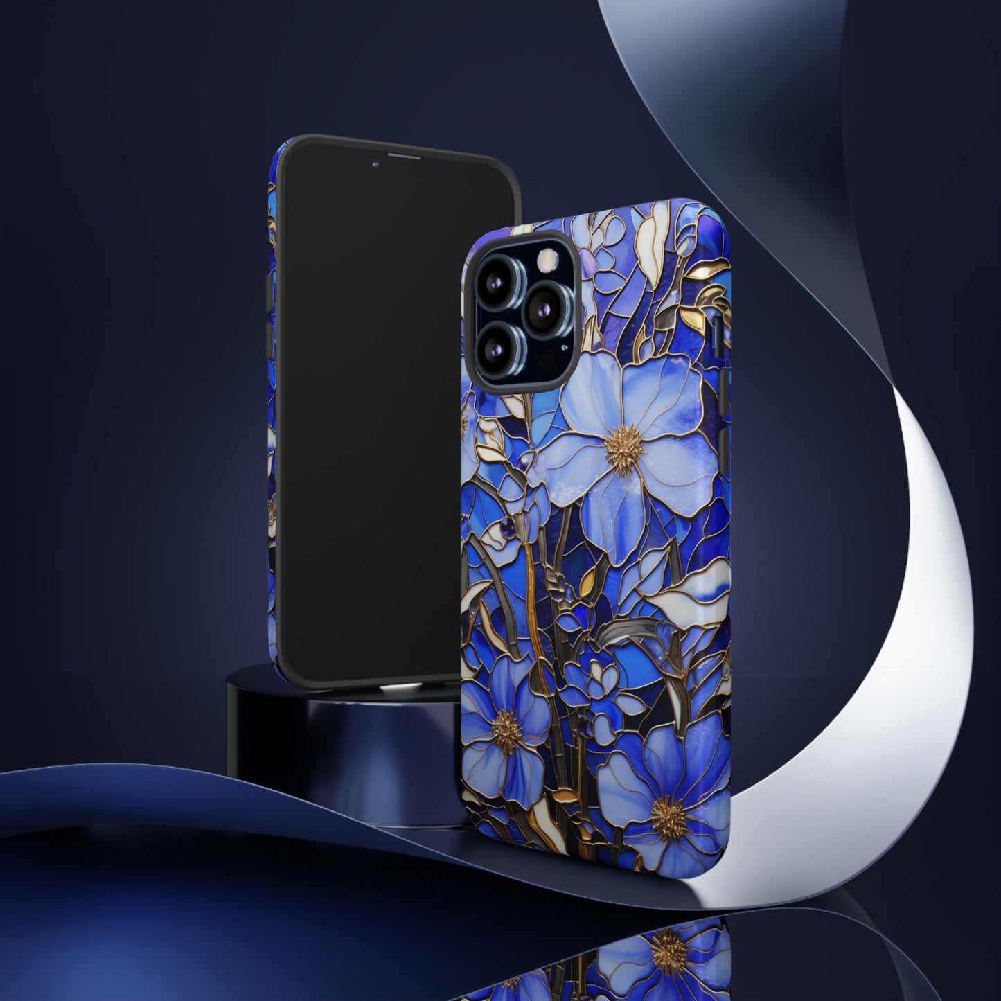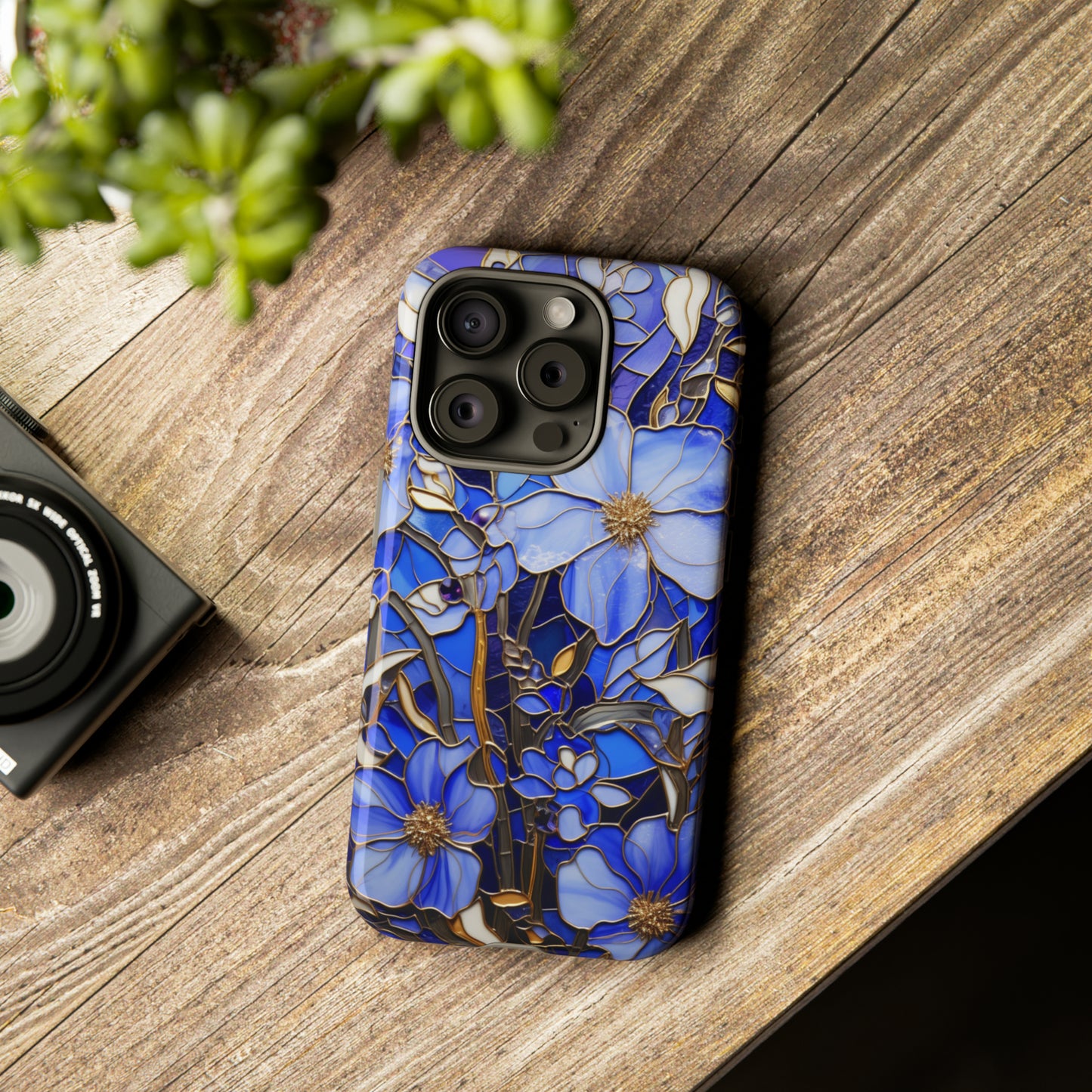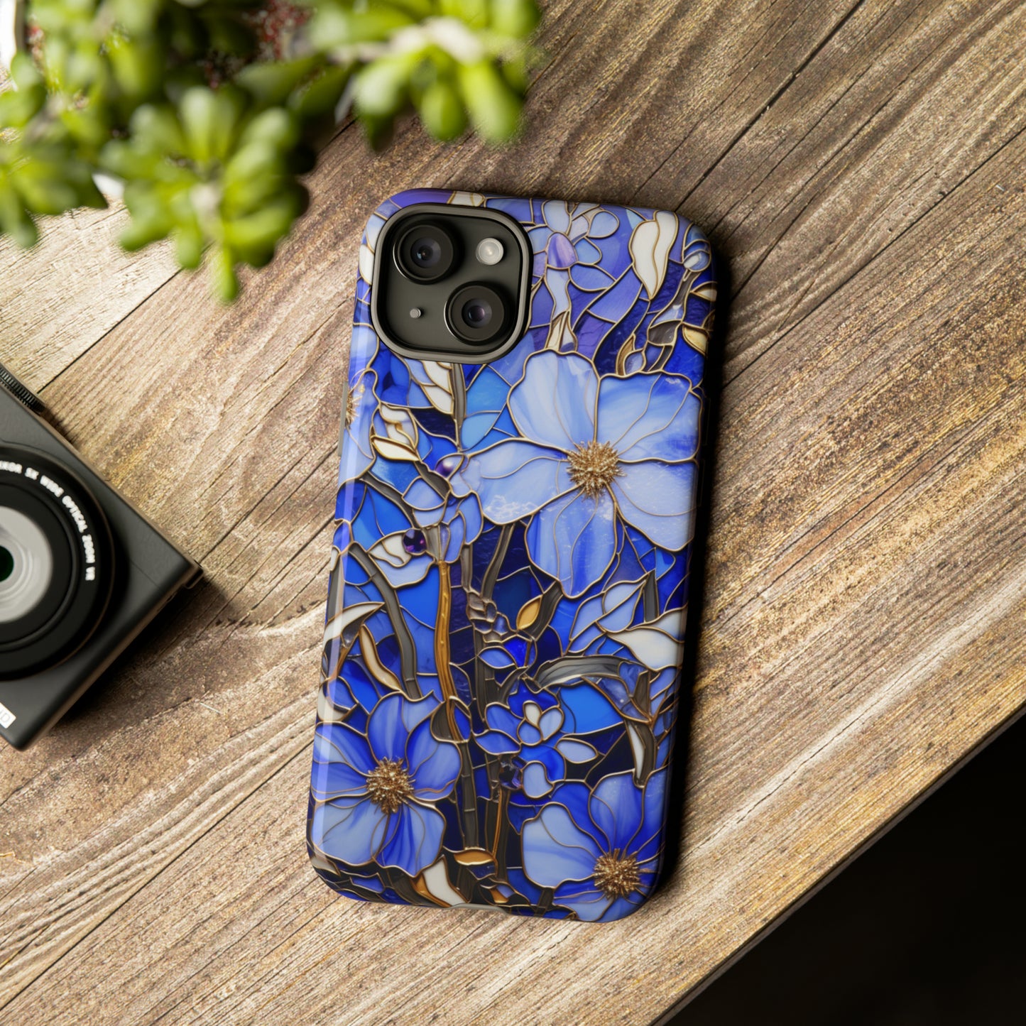 Periwinkle Stained Glass with Gold Inlay Phone Case for iPhone 15, 14, Pro Max, 13, 12 & Samsung Galaxy S23, S22, S21, Google Pixel