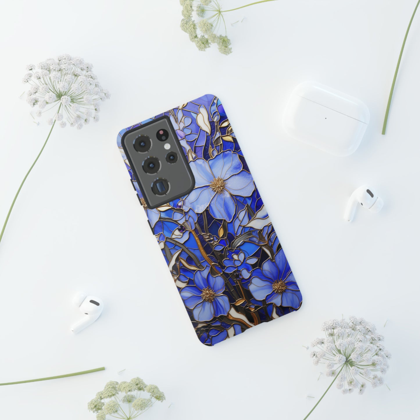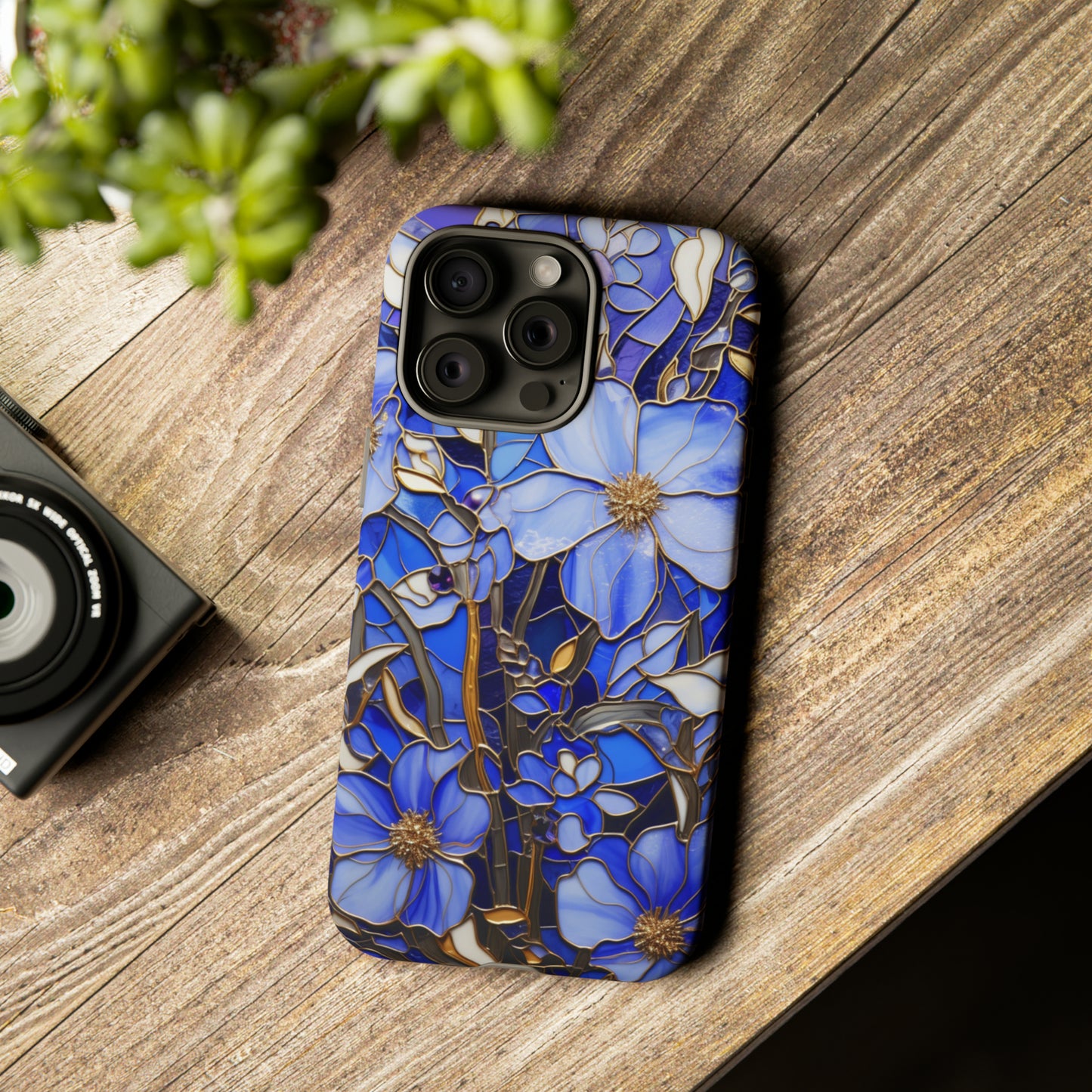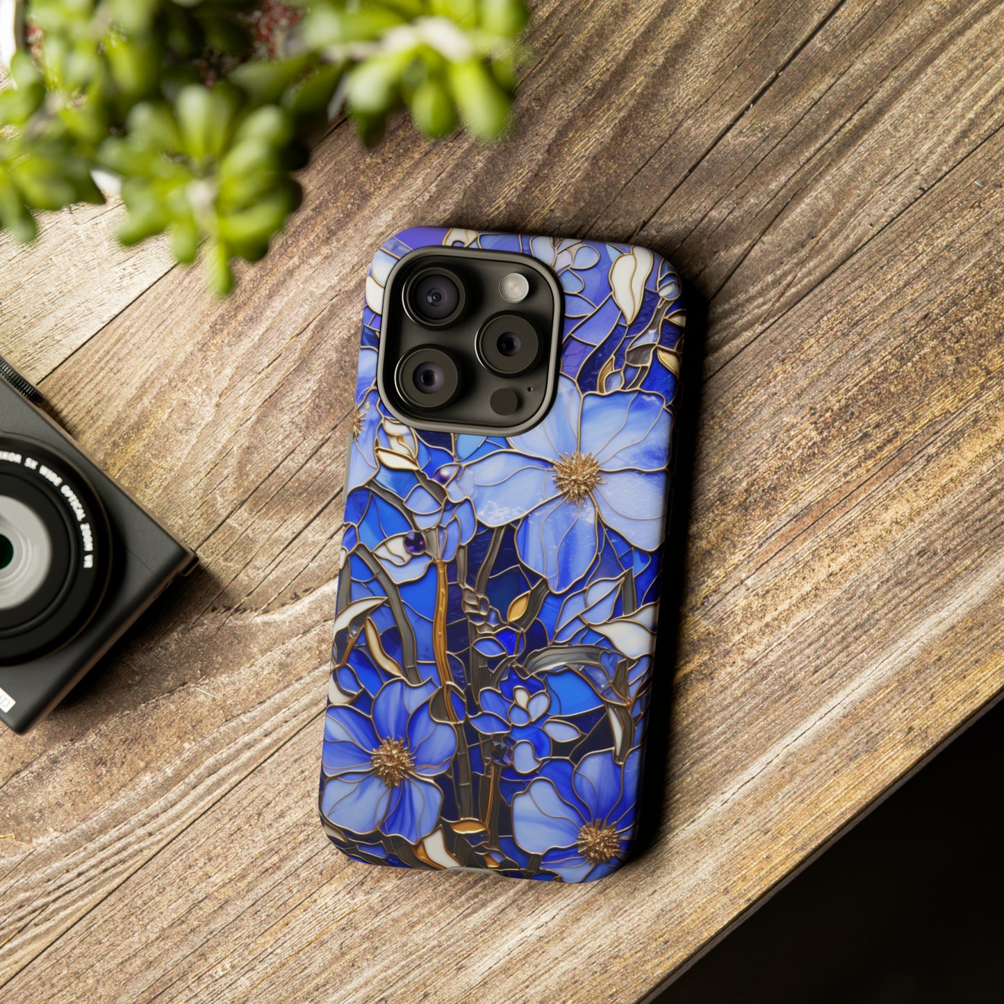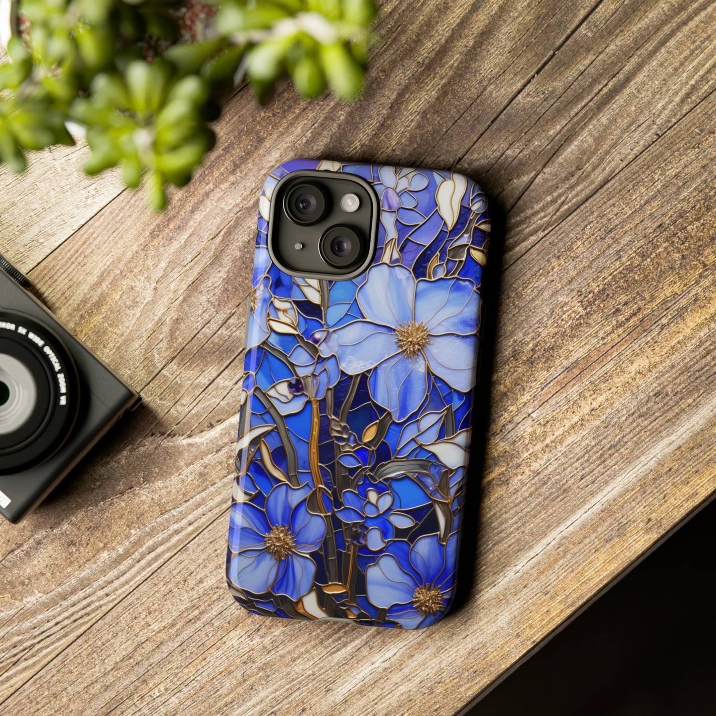 Periwinkle Stained Glass with Gold Inlay Phone Case for iPhone 15, 14, Pro Max, 13, 12 & Samsung Galaxy S23, S22, S21, Google Pixel