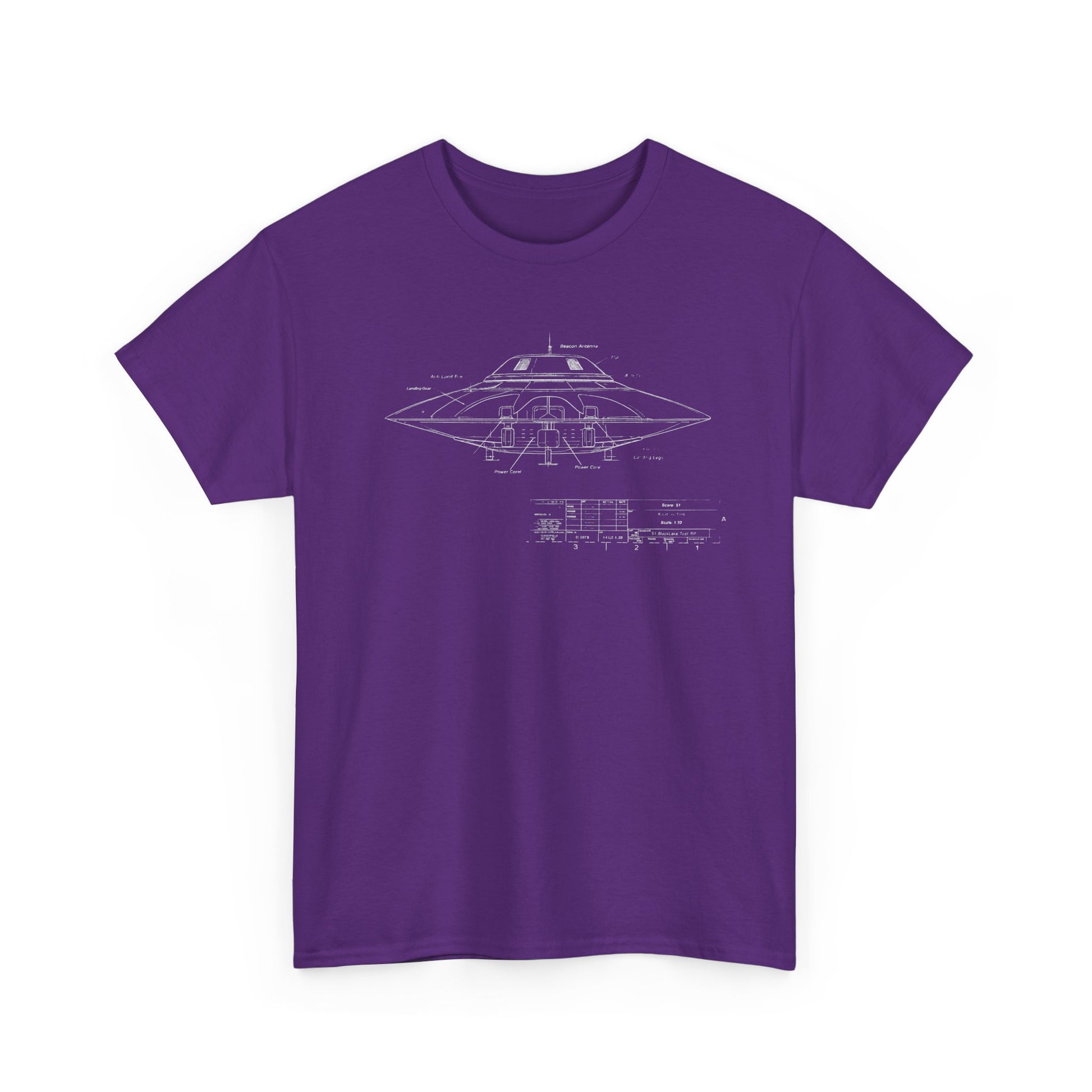 A sci-fi t-shirt inspired by UFO blueprints, secret base theories, and recovered extraterrestrial craft designs.